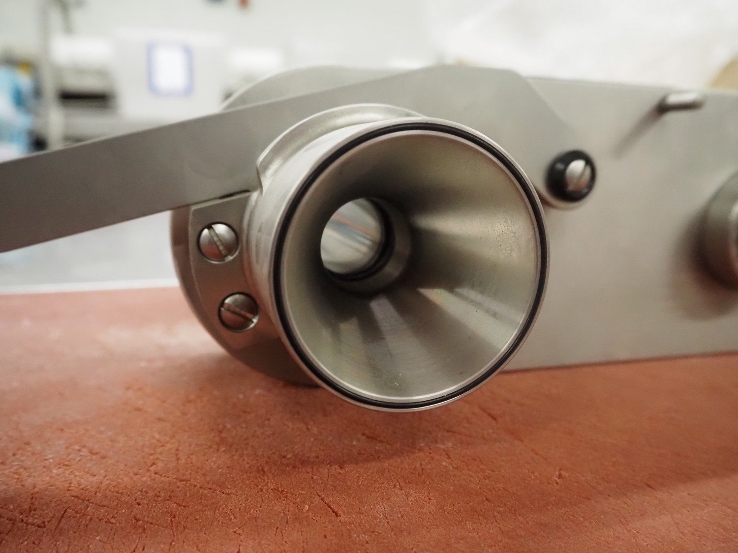 Frey Maschinenbau linking attachment for vacuum filling machine, dimensions: 400 mm x 200 mm x 150 mm. Including 2 filling pipes. Kavel locatie: Hoofdweg 1623, 2157 PB Abbenes, Nederland
