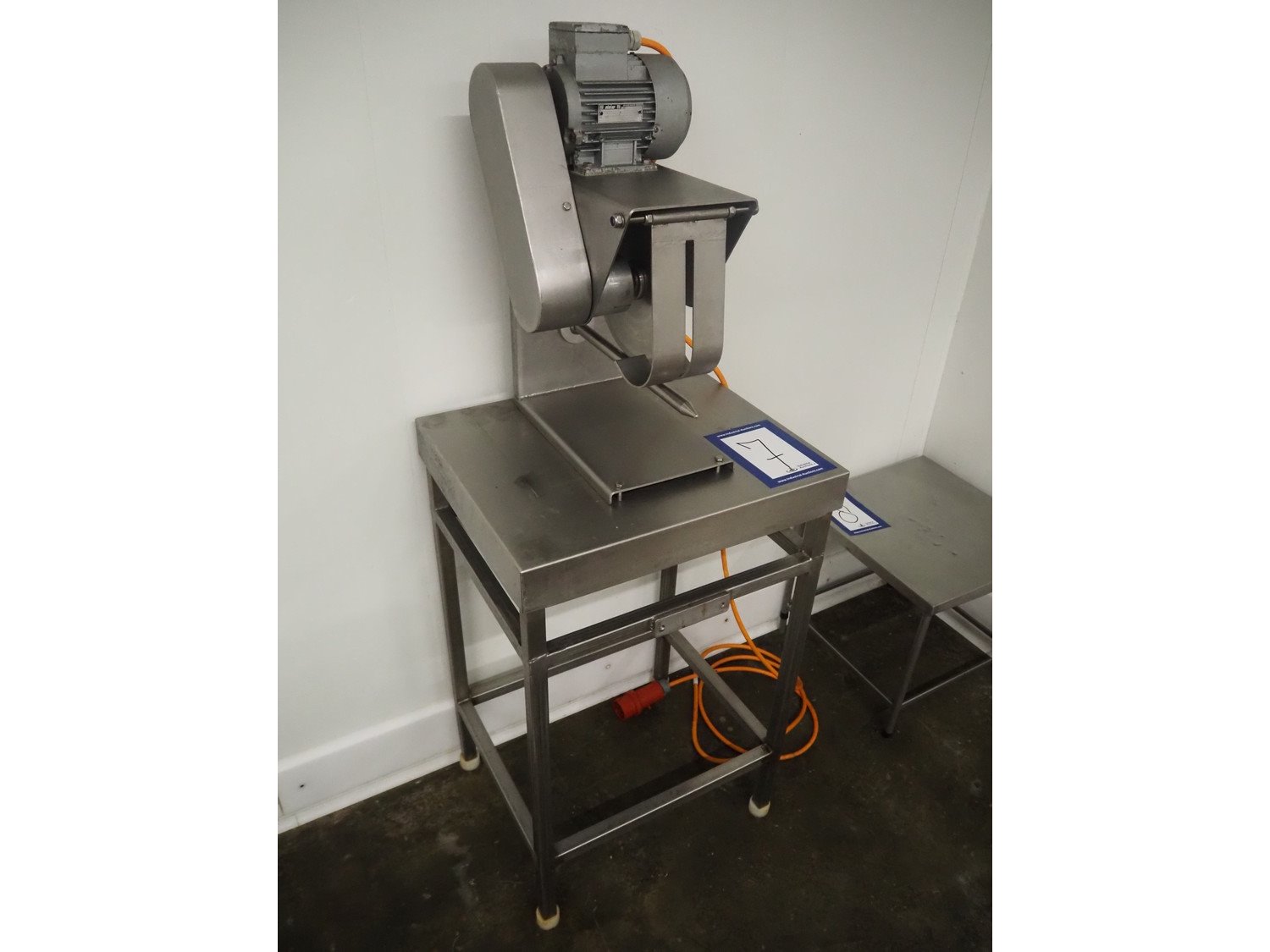 Slicer on s/s table, diameter knife: 280 mm, total dimensions: 600 mm x 500 mm x 1600 mm. Kavel locatie: Hoofdweg 1623, 2157 PB Abbenes, Nederland