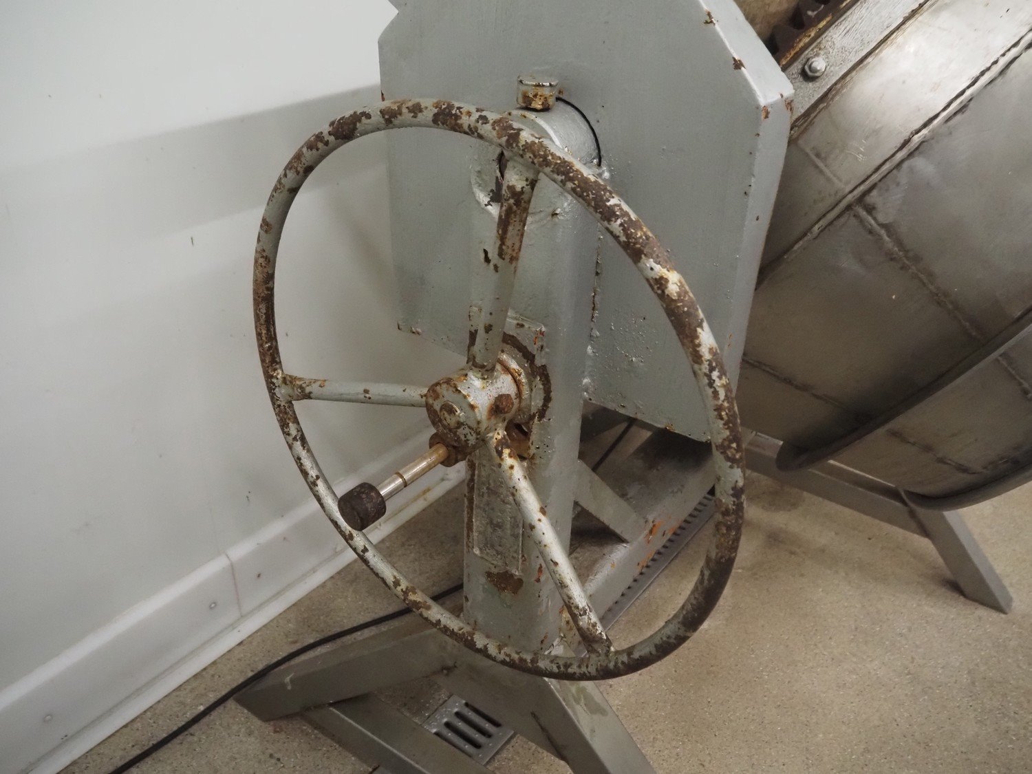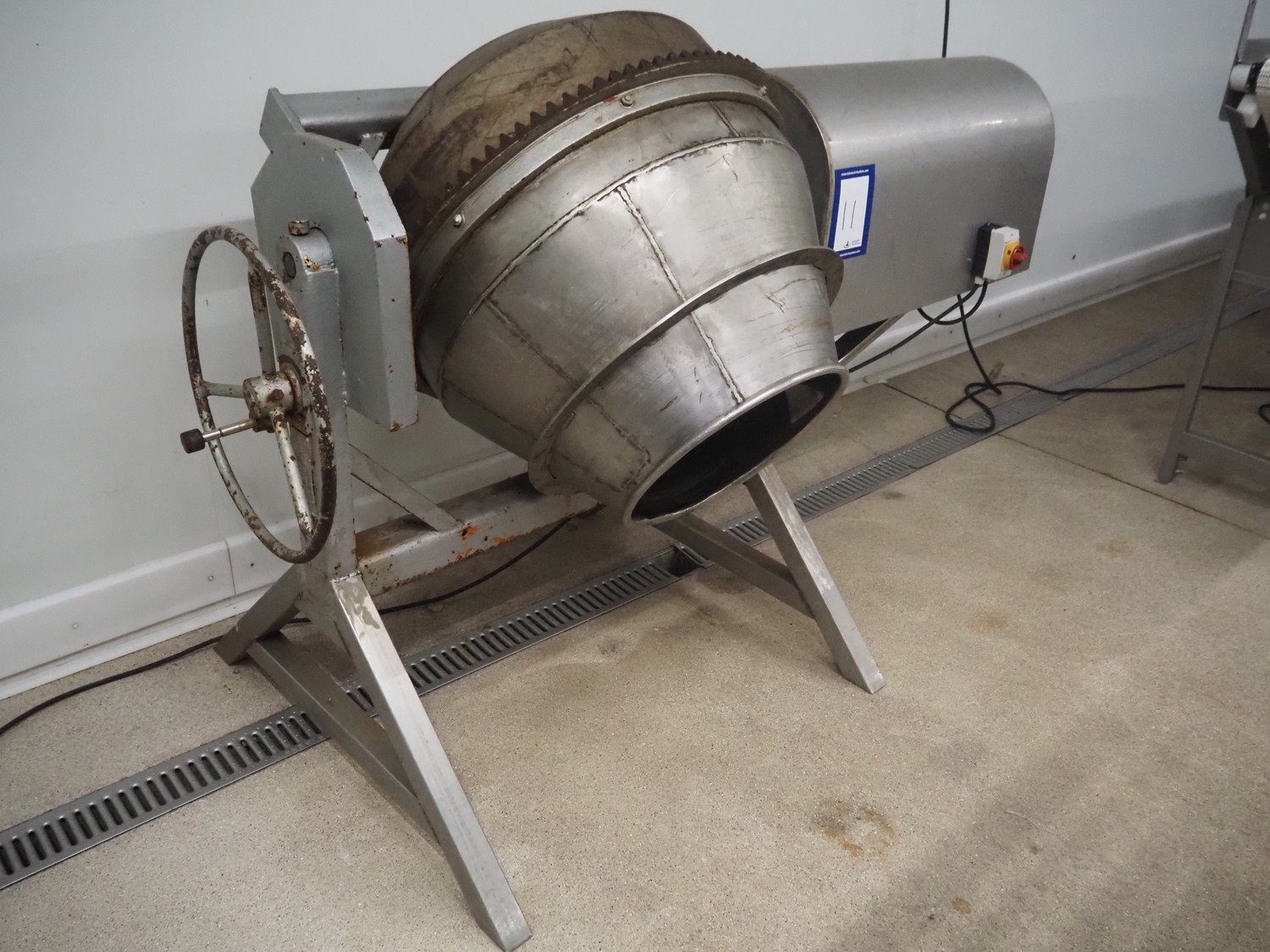 Tumbler, steel frame, s/s drum, dimensions drum: Ø 800 mm x 700 mm, volume: 60 liter, total dimensions: 2100 mm x 1100 mm x 1500 mm. Kavel locatie: Hoofdweg 1623, 2157 PB Abbenes, Nederland