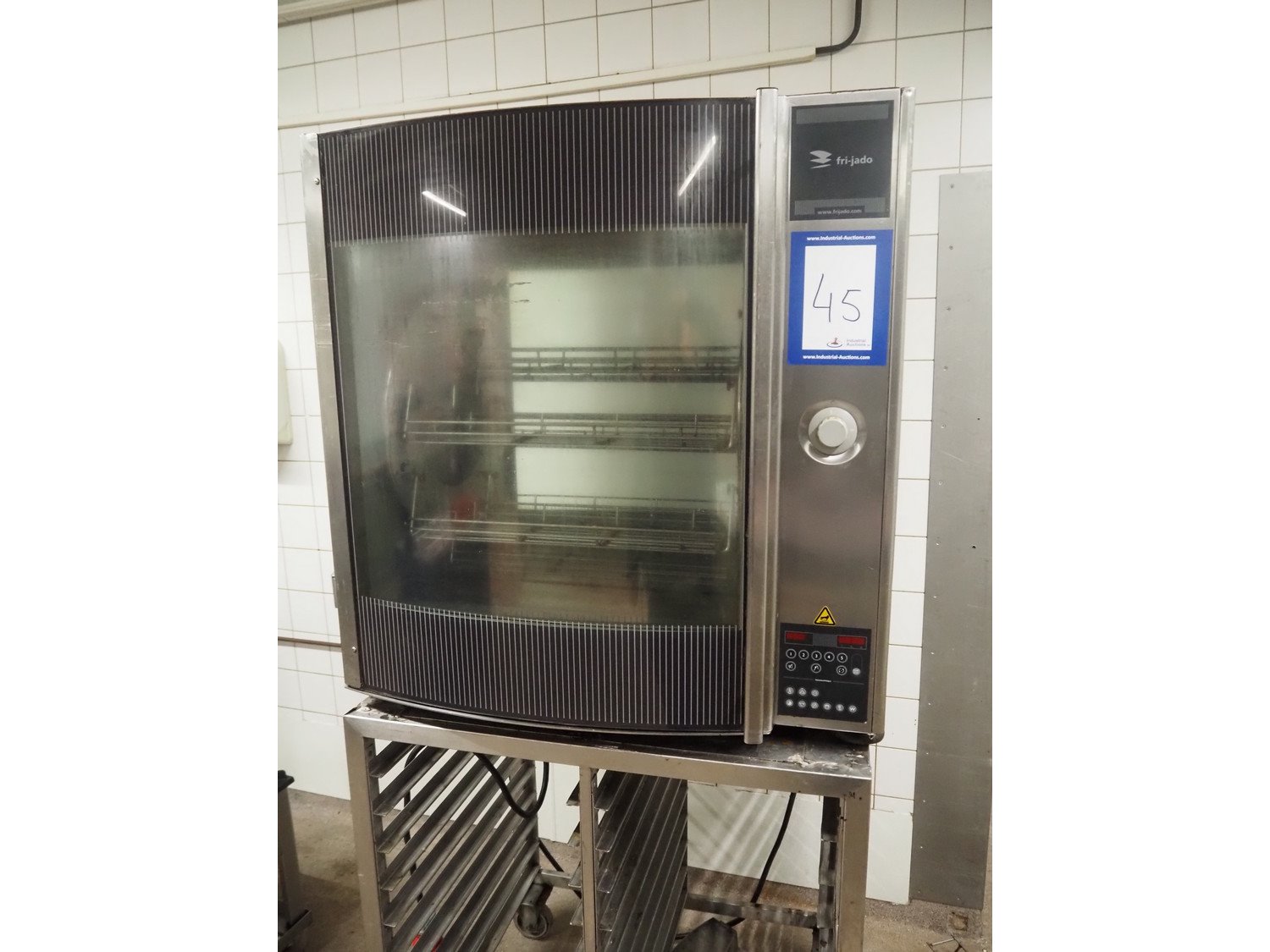 Fri-Jado mobile rotisserie grill, type: TG 330 E, serial number: 100001777, year of construction: 1998, dimensions: 960 mm x 800 mm x 2060 mm. Including extra baskets. Kavel locatie: Hoofdweg 1623, 2157 PB Abbenes, Nederland