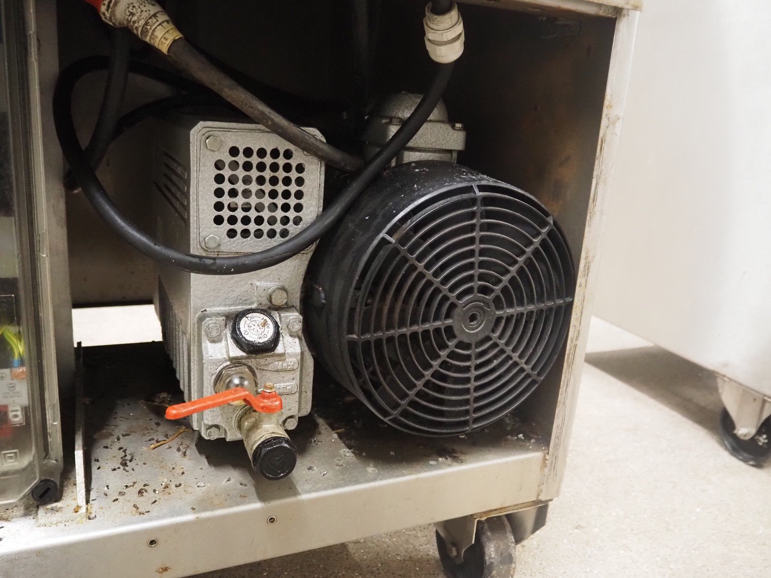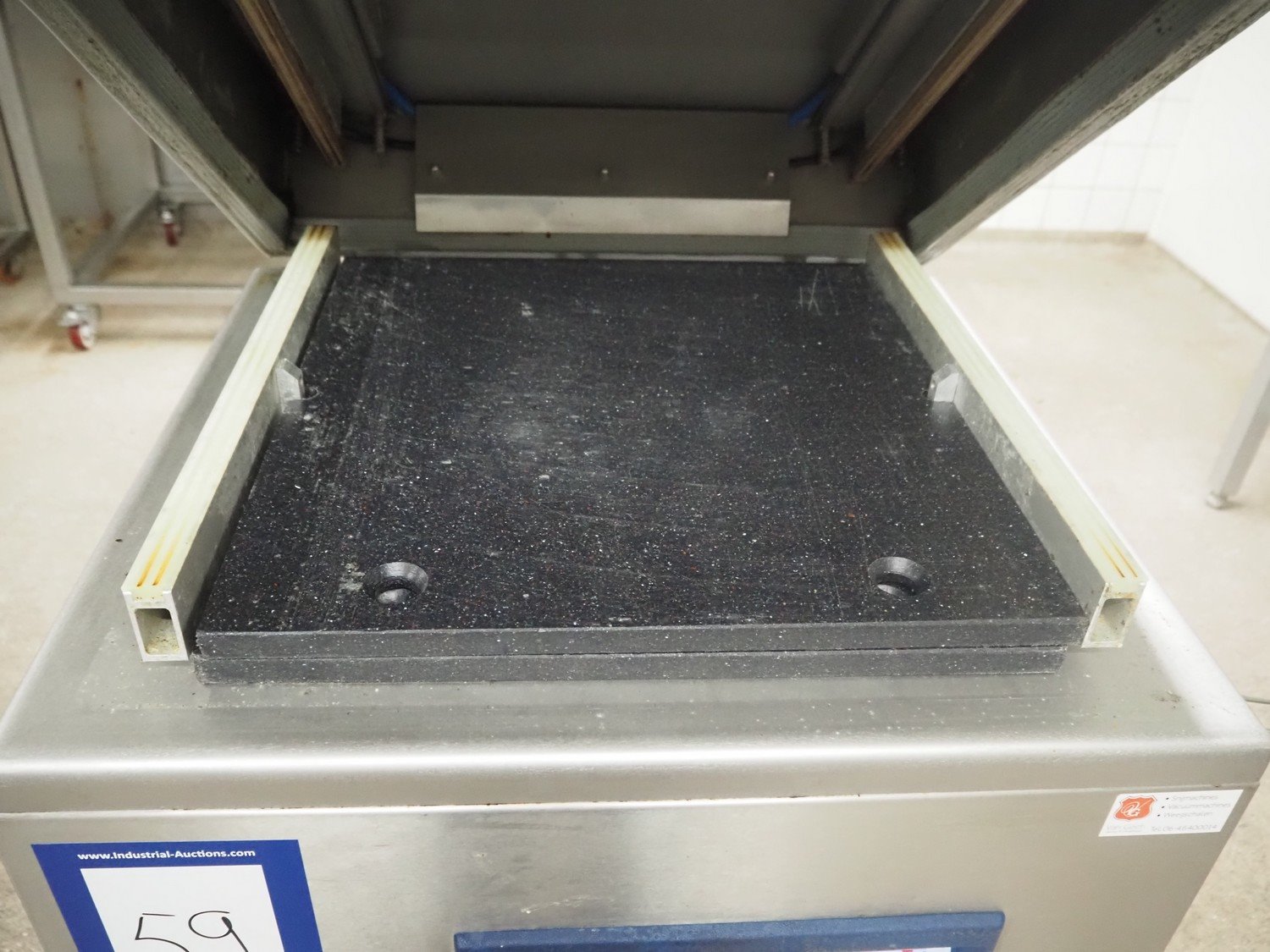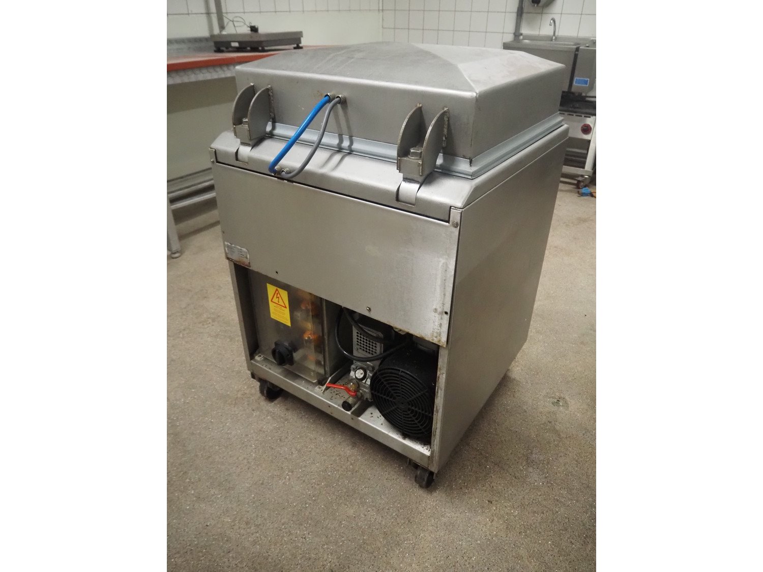 Henkovac mobile vacuum machine, type: E-202, number: 209068963, year of construction: 1998, 400 V, 3 Ph, 50 Hz, 9.4 A, 3.3 kW, seal length: (2x) 560 mm, dimensions chamber: 510 mm x 530 mm, Busch vacuum pump, total dimensions: 740 mm x 700 mm x 1100 mm. Kavel locatie: Hoofdweg 1623, 2157 PB Abbenes, Nederland