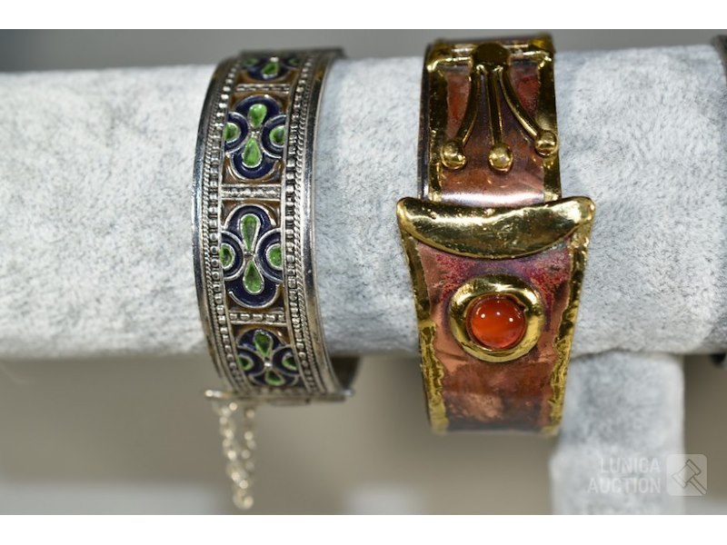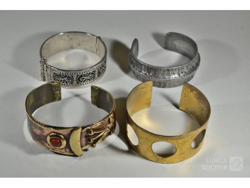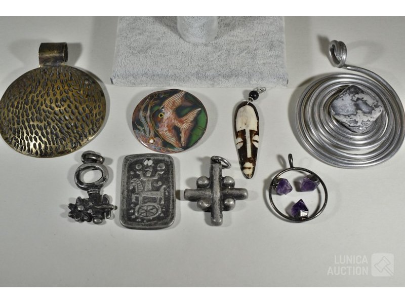Ca. 11 stuksO.a. 4x Armband, 7x hanger, 1x broche. Diverse metalen en modellen. Afmeting hangers varïerend van 25x40 mm tot 60x80 mm
