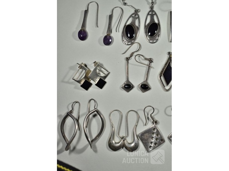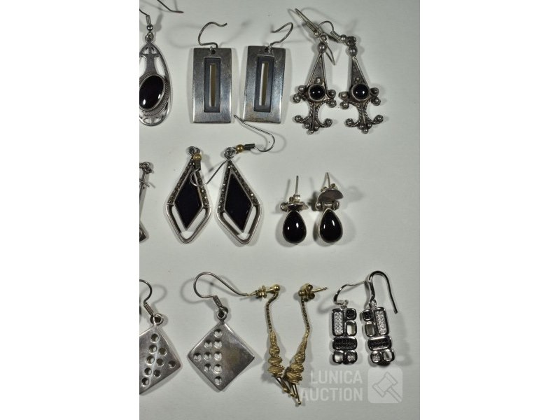 Ca. 11 sets oorhangers, o.a. zilver 925Diverse modellen en afmetingen, van 10x21 mm tot 19x37 mm. De meeste gemerkt met 925. Met inzet van o.a. onyx, enz. Totaal gewicht ca. 80 gram.