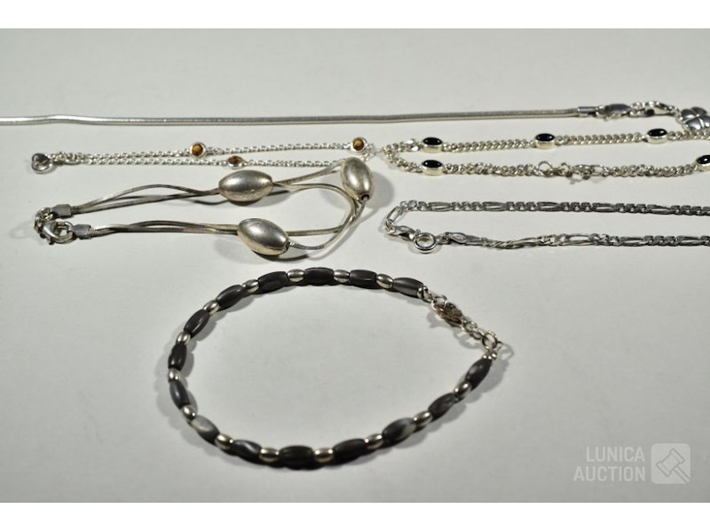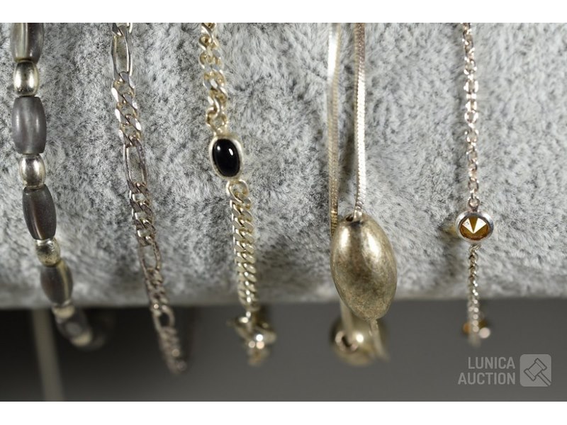 6 stuksGemerkt met 925 of "zwaard 925". Diverse modellen. Totaal gewicht ca. 24 gram.