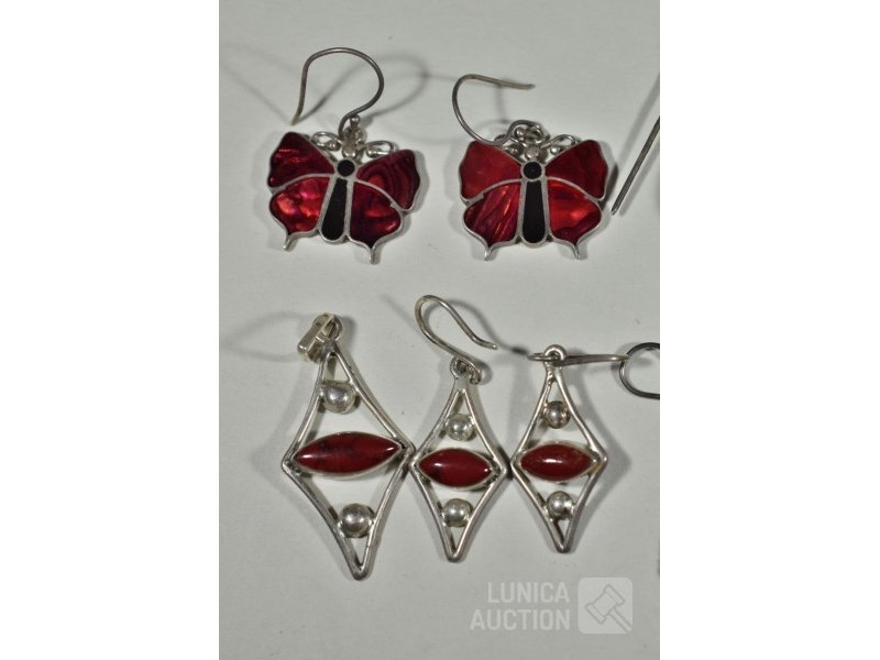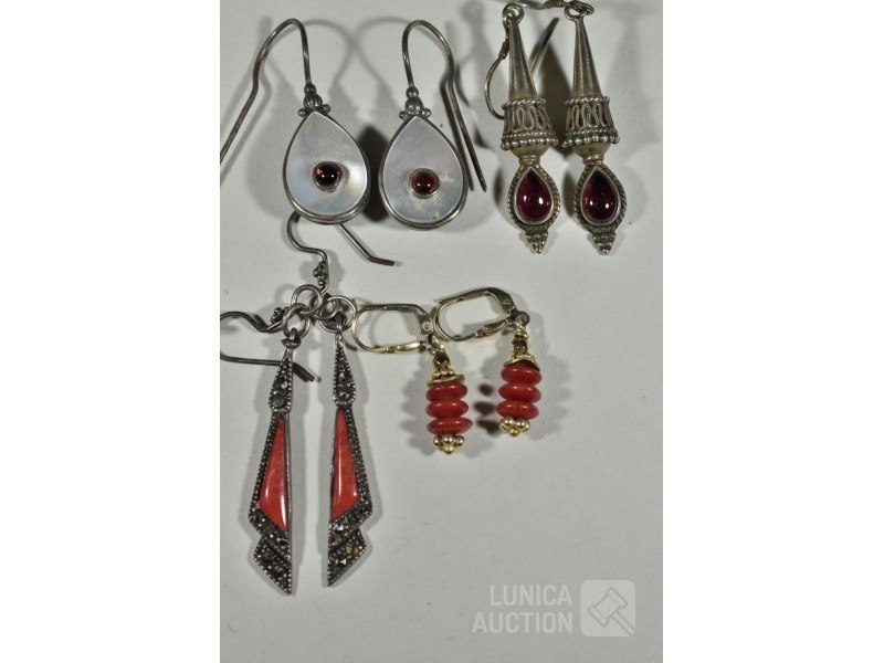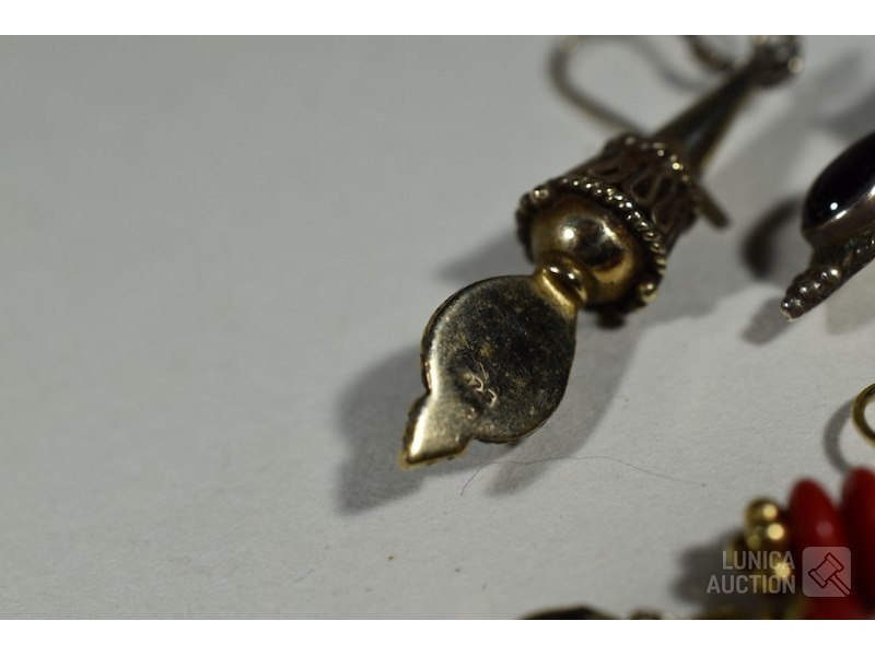 6 sets oorhangers en 1 hangerDiverse modellen, materialen en afmetingen. O.a. zilver 925. Afmetingen variëren van 7x15 mm tot 9x40 mm
