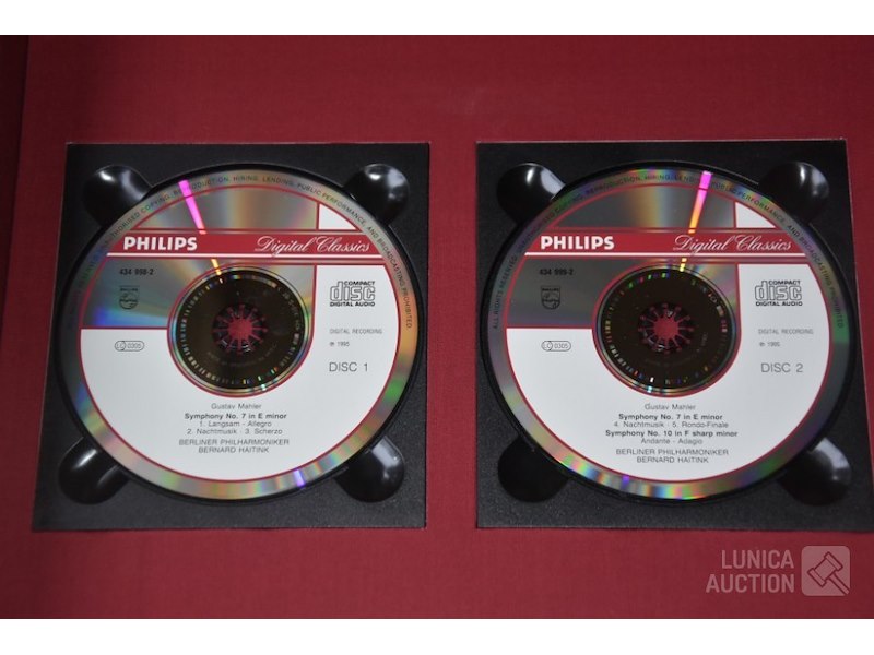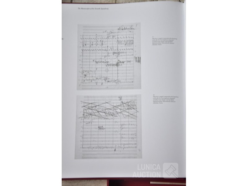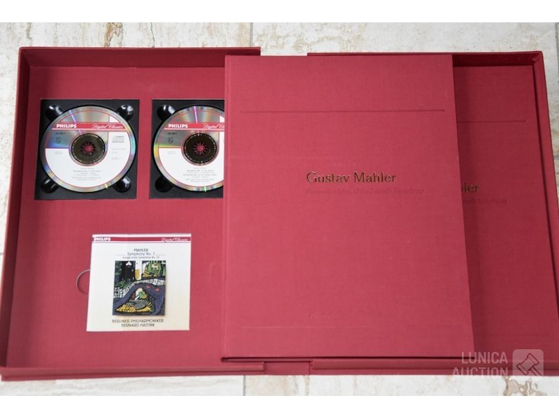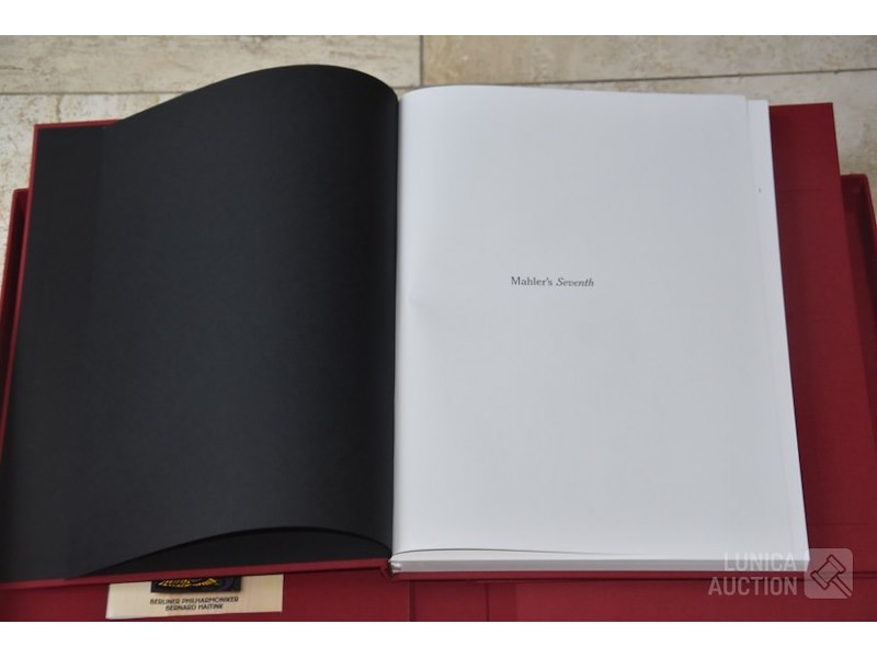 Gesigneerd door BERNARD HAITINKHet betreft hier de complete herdruk van de 7e symphonie van Mahler, 2 boeken in luxe cassette, gelimiteerde oplage, Engelstalig. Inclusief 2 Cd's van concert Berliner Philharmoniker met dirigent Bernard HAITINK. Titel: "Facsmile edition of the Seventh Symphony" Gustav Mahler; Uitgave: Rosbeek Publishers Amsterdam 1995. Met tekst van Donald Mitchell en Edward R. Reilly. Uitgave ter ere van Mahler Festival 1995, mogelijk gemaakt door Bernard Haitink fonds. Van deze luxe editie zijn er 130 gemaakt waarvan 100 genummerd met 1 tot 100 en 30 genummerd met romeinse cijfers I tot XXX. Deze cassette is nummer XXVIII (28) van XXX (30) Zeldzaam! Boeken en Cd's zijn in nieuwstaat. Luxe omslagcassette heeft enkele watervlekken. Afmeting omslag (bxdxh)41x6x30 cm. Gewicht ca. 6 kg