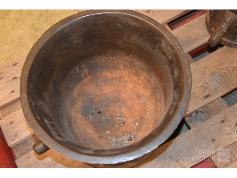 Gietijzer, met handvatenAfmeting (bxh) 40x33 cm. Gewicht 55 kg. Wellicht gebruikt bij het bronsgieten.