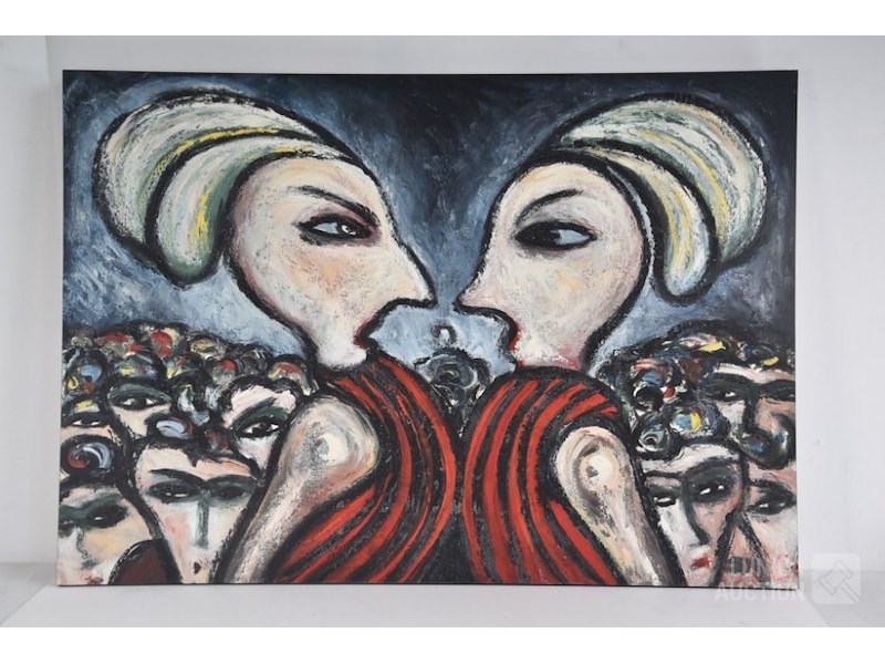 Acrylverf op papier, 1983Gesigneerd R.O. Papier is opgeplakt op paneel. Afmeting 100x70 cm.