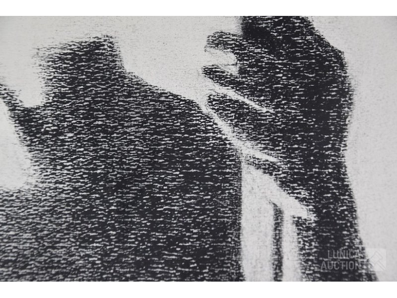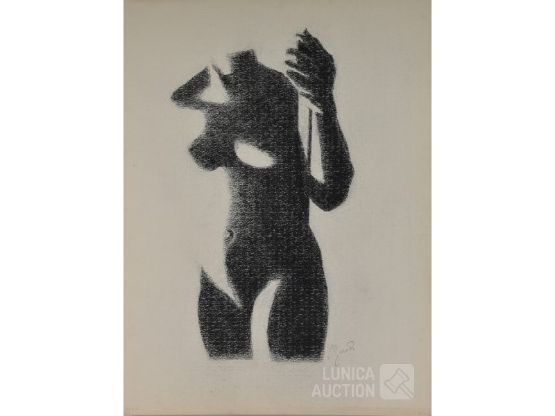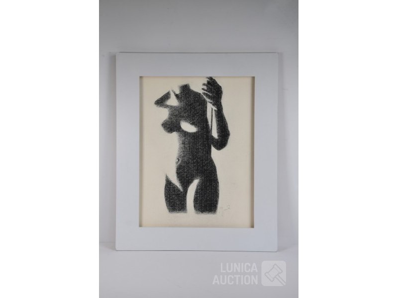 "vrouwen lichaam/schaduw"op papier, niet ingelijst, afmeting 55x70 cm. Gesigneerd R.O. Toegeschreven aan Jean Guisset (1947-2011). Houtskool is gefixeerd. Lijst niet inbegrepen.