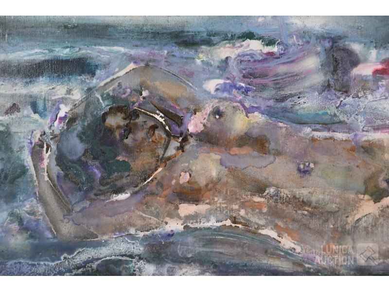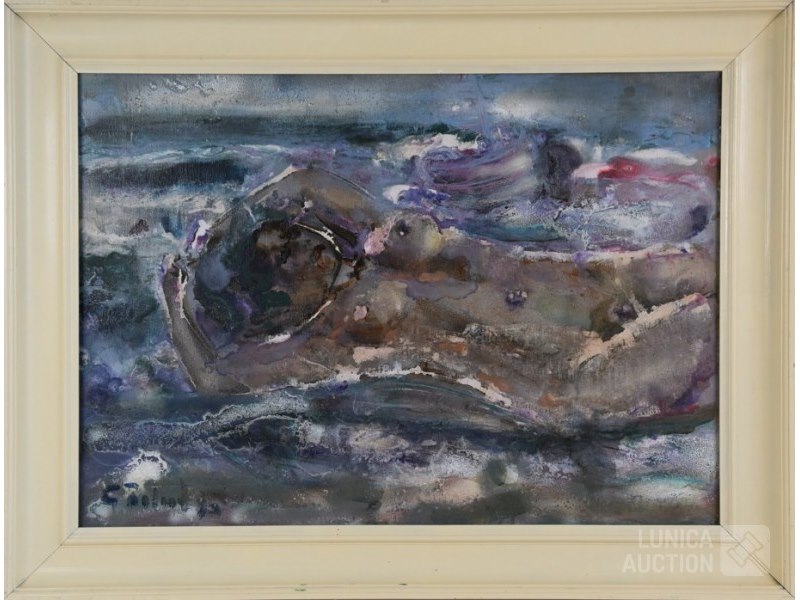 1993, "metamorphose"olieverf op doek , afmeting 70x50 cm. Gesigneerd L.O. De getoonde lijst dient ter illustratie en wordt niet meegeleverd .