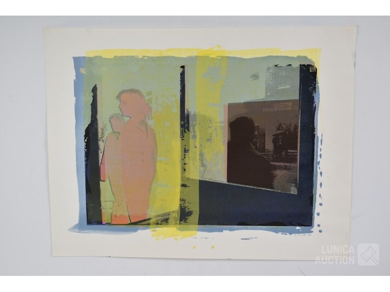 Seriegrafie, 1988op papier, niet ingelijst, afmeting 63x48 cm. Gesigneerd R.O. Lucette Virelle is een Belgische kunstenares met een passie voor beelden in al hun vormen. Haar artistieke reis begon in een fotoclub waar ze verschillende druktechnieken leerde, waaronder zwart-witdruk op barietpapier en vervolgens op RC-papier, evenals kleurendruk met Cibachrome. Ze vervolgde haar artistieke opleiding vier jaar aan de academie, waar ze zich specialiseerde in zeefdruk. Ook leerde ze de bromolietechniek, waarmee ze haar fotografische expertise verder verrijkte. Tegenwoordig werkt Lucette Virelle voornamelijk met digitale tools, waarbij ze zowel diascans als directe digitale fotografie gebruikt.