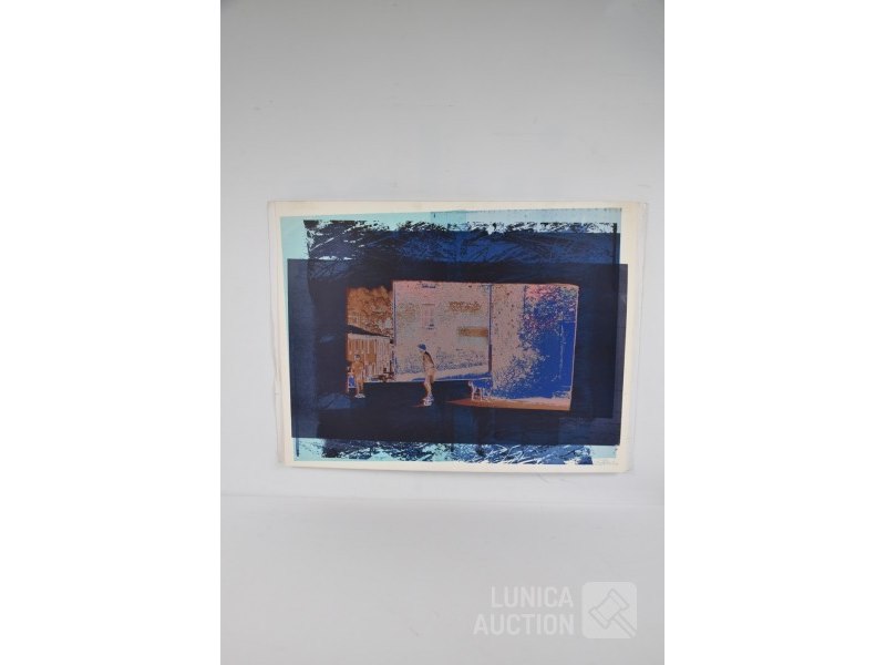 Seriegrafie, 1988op papier, niet ingelijst, afmeting 70x50 cm. Gesigneerd R.O. Lucette Virelle is een Belgische kunstenares met een passie voor beelden in al hun vormen. Haar artistieke reis begon in een fotoclub waar ze verschillende druktechnieken leerde, waaronder zwart-witdruk op barietpapier en vervolgens op RC-papier, evenals kleurendruk met Cibachrome. Ze vervolgde haar artistieke opleiding vier jaar aan de academie, waar ze zich specialiseerde in zeefdruk. Ook leerde ze de bromolietechniek, waarmee ze haar fotografische expertise verder verrijkte. Tegenwoordig werkt Lucette Virelle voornamelijk met digitale tools, waarbij ze zowel diascans als directe digitale fotografie gebruikt.