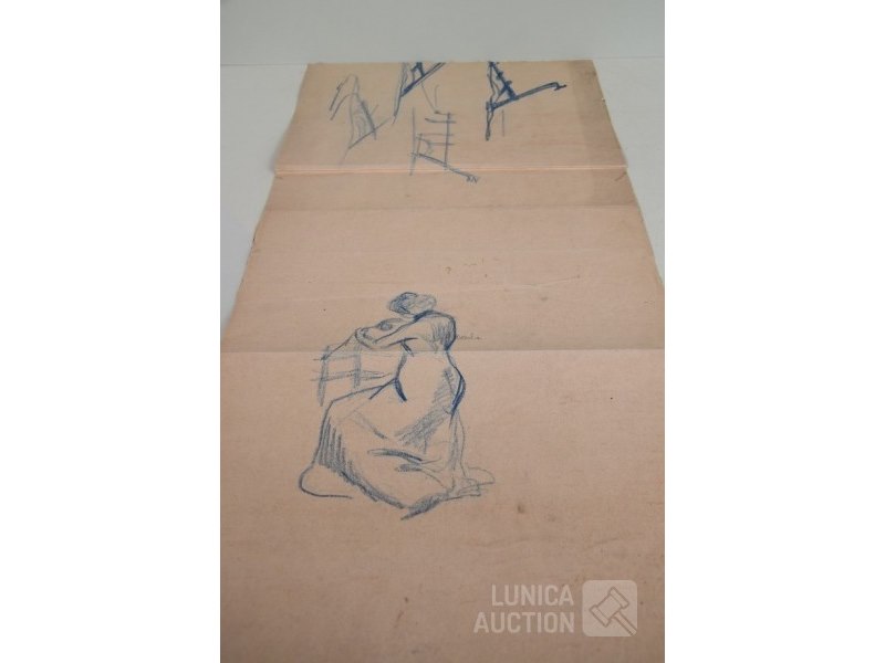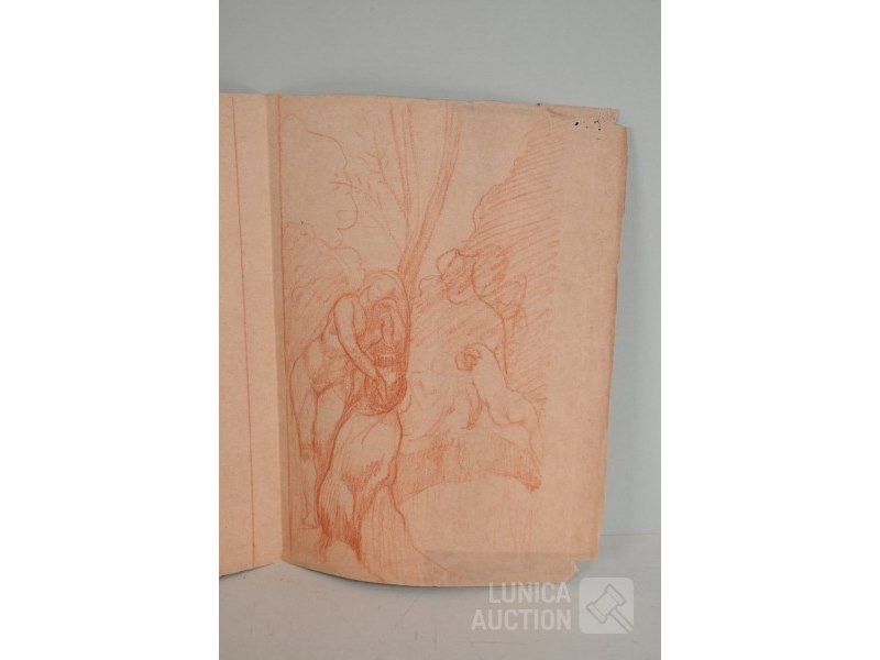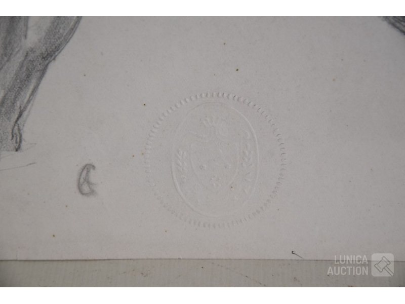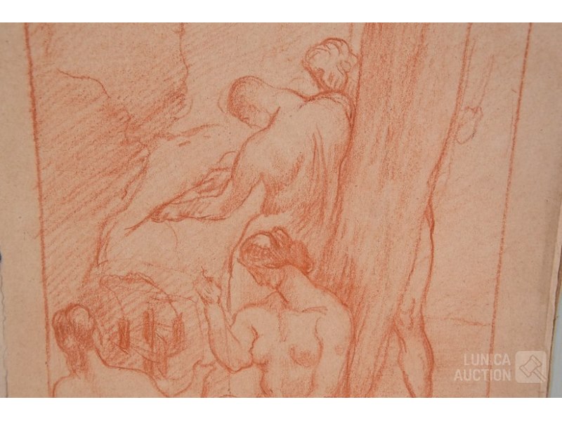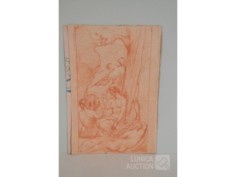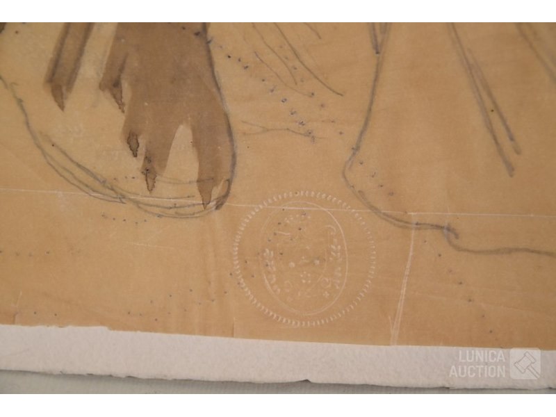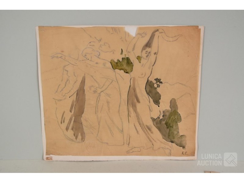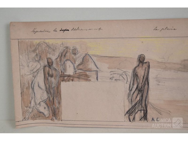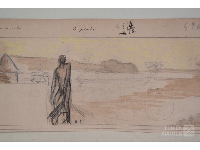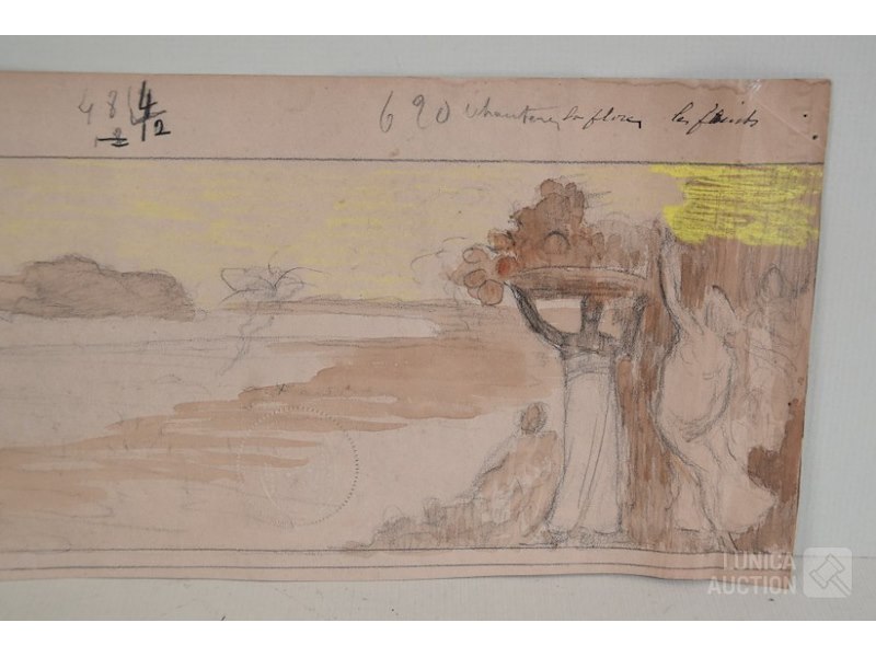 4 stuks, ALBERT CIAMBERLANI (1864-1956)op papier. Alle werken zijn voorzien van een stempel/zegel. Afmetingen papier: 22x27 cm, 50x16 cm, 80x40 cm, 40x34 cm.