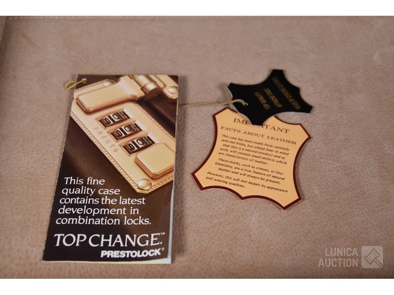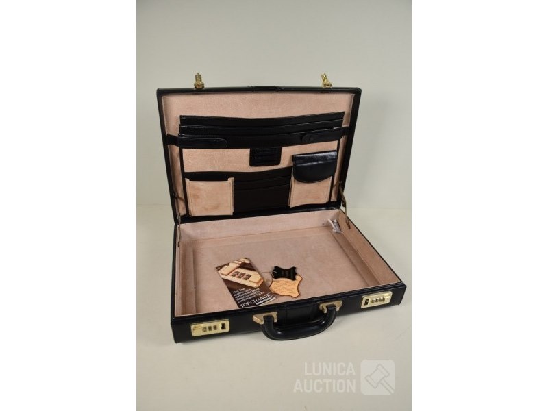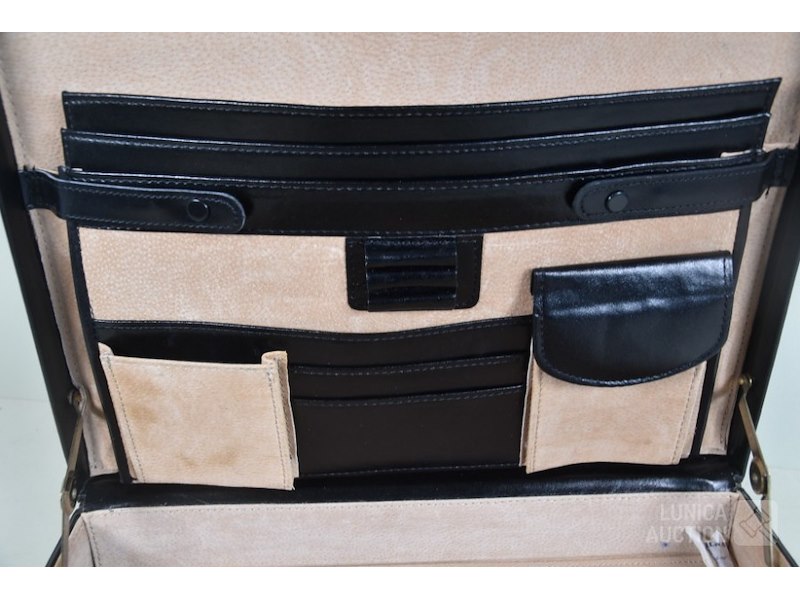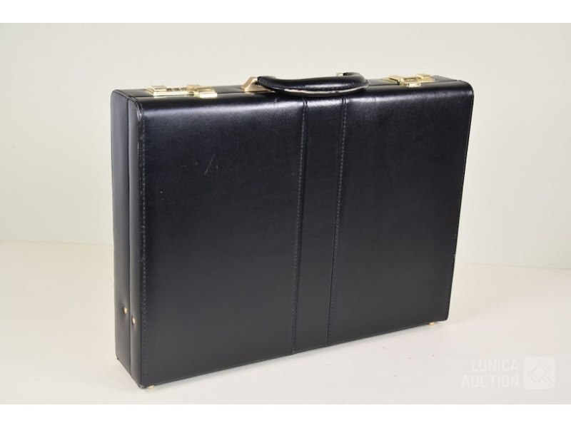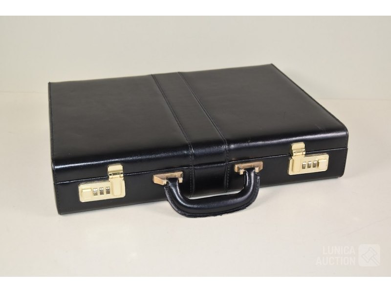 Zwart lederMet presto cijferslot. Afmeting (bxdxh) 46x9x33 cm. Met lichte gebruikerssporen.