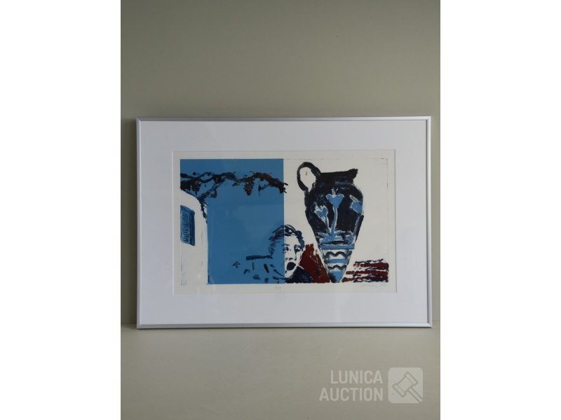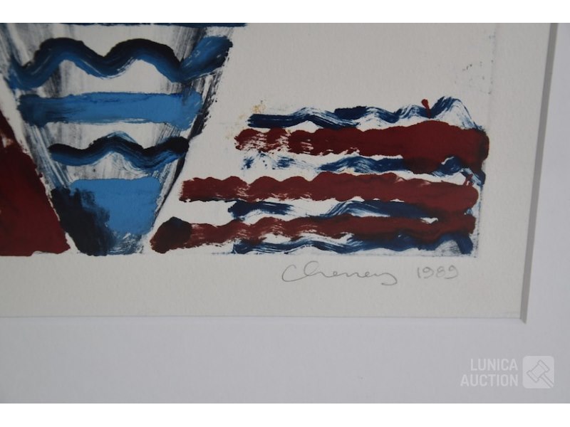 DAVID CHENEY1989. Titel "wine". Ingelijst, achter glas. Afmeting 70x50 cm. Handgesigneerd R.O.
