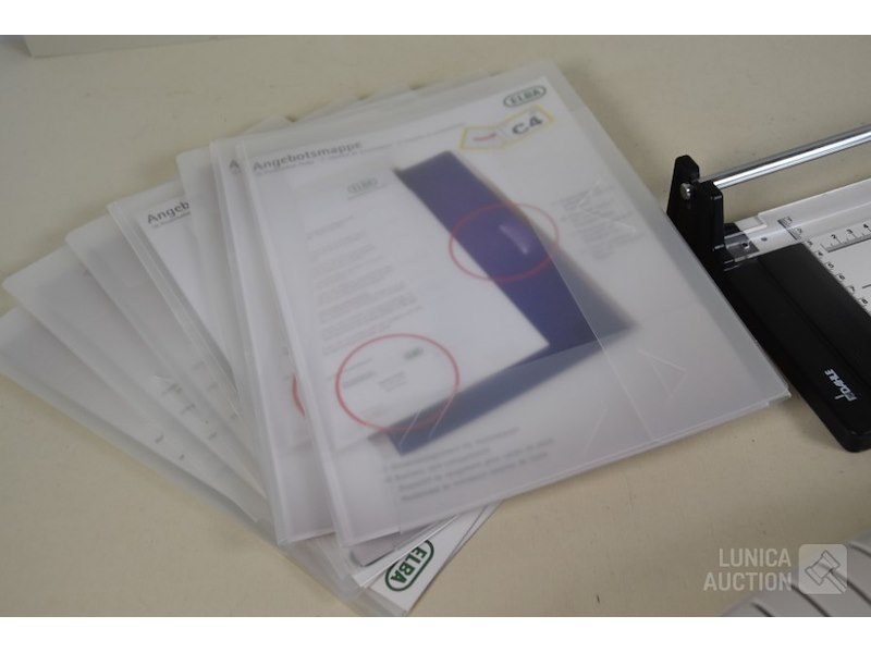 Lamineermachine REXEL LV250Inclusief Papiersnijmachine DAHLE type B507; Inclusief 8 ELBA transparante presenteermappen, A4
