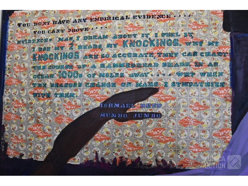 KRISTINE STILESTitel: "Knockings". afmeting (bxh) 145x135 cm!, gemengde techniek op doek. Niet gesigneerd. Ophalen op afspraak.