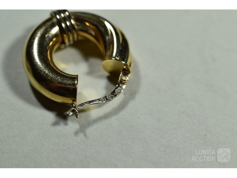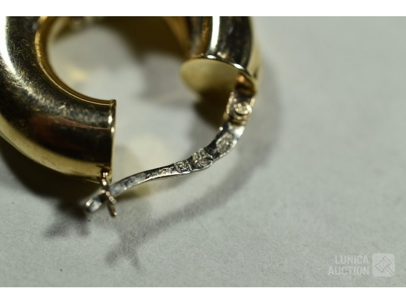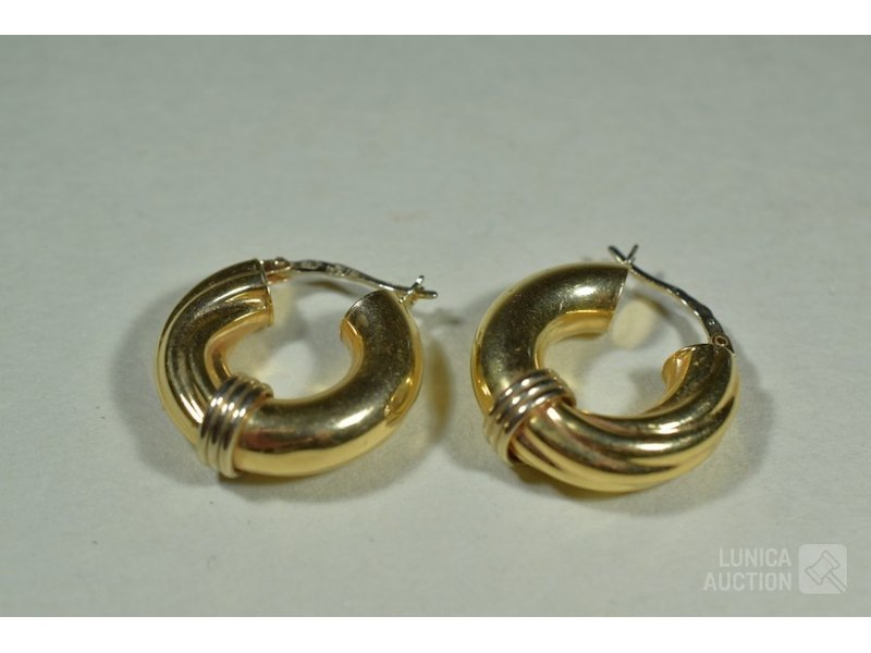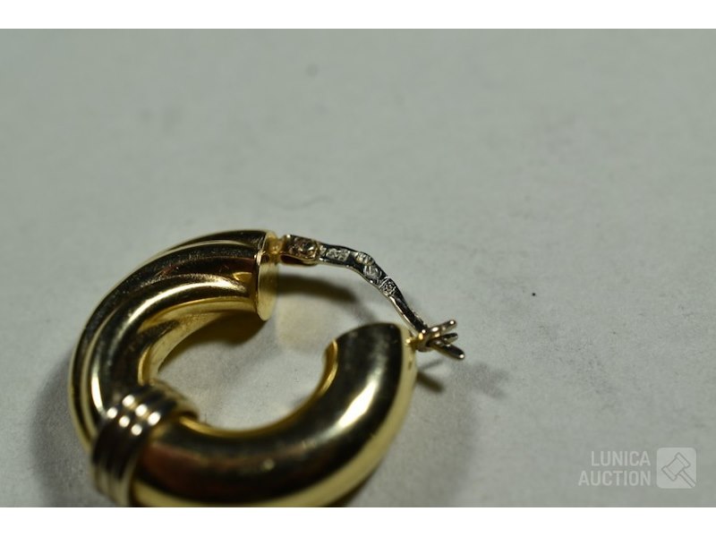 Set, goud 585gemerkt met 585. Totaal gewicht ca. 4,9 gram. Doorsnede oorsteker 21 mm
