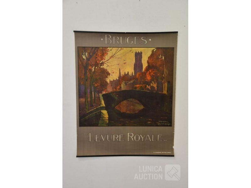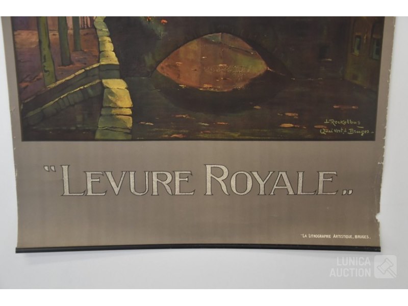 " Bruges, Levure Royal", ca. 1910Ontwerp LODEWIJK RECKELBUS (1864-1958). Druk "La Lithographie Artistique, Bruges". Afmeting 56x70 cm. Gezien de leeftijd in goede staat.