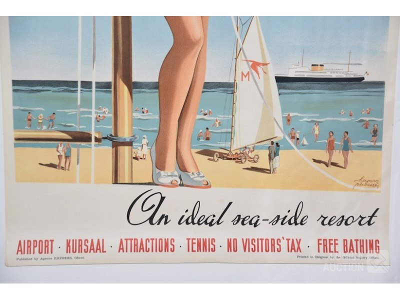 "Middelkerke", ontwerp HERMAN VERBAEREoriginele poster, jaren'50. Afmeting 60x98 cm. Kleine scheurtjes papier bovenzijde affiche.