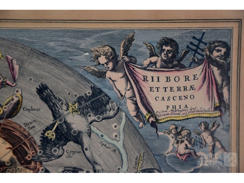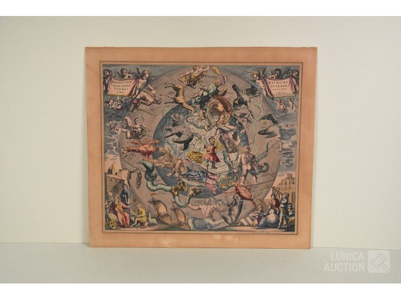 Cartograaf HENRICUS HONDIUSKleurenets op karton, afmeting 55x49 cm