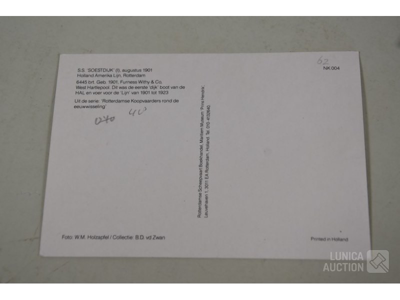 Ca. 97 stuks. Thema: Schepen Lunica Auction organiseert onafhankelijk veilingen in opdracht van derden. Wij streven altijd naar kwalitatief goede en leuke producten. Wilt u ook zelf iets veilen? Neem dan contact met ons op!