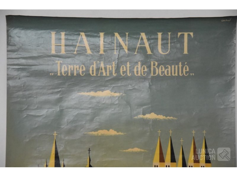 "Terre d'art et de Beauté", jaren '50Uitgave dienst toerisme Henegouwen. Afmeting 62x98 cm.