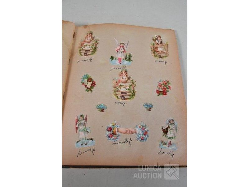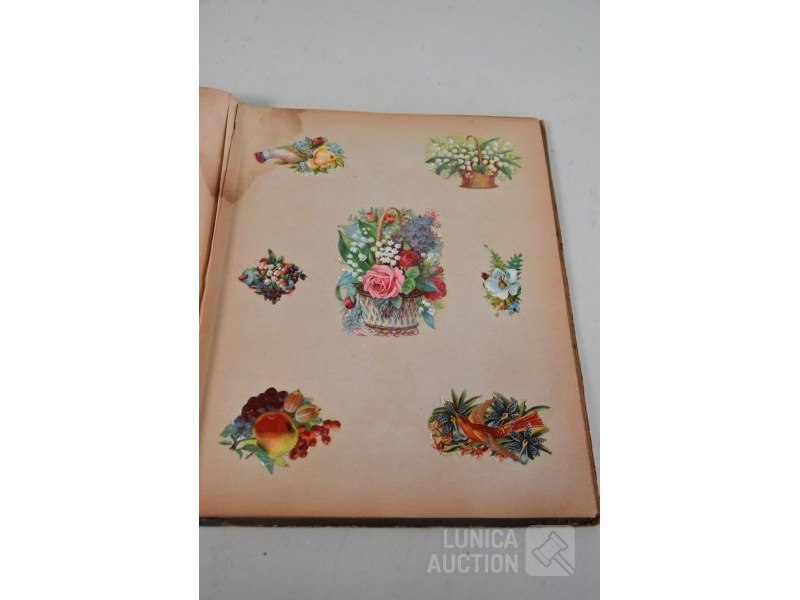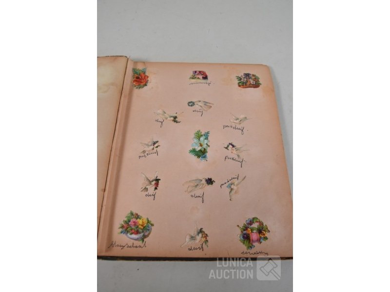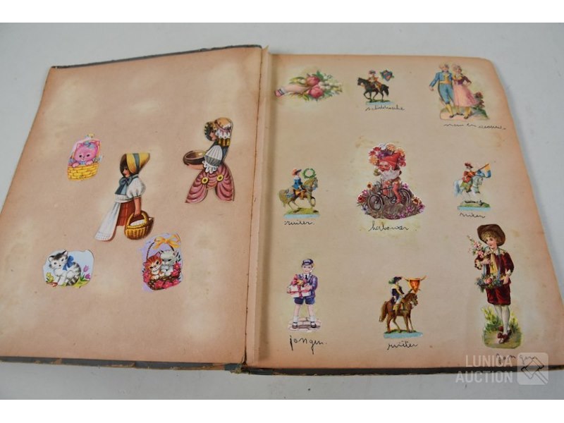 Met ca. 275 plaatjesAfmeting 26x32 cm. Jaren'20. Inhoud bevat mooie plaatjes. Album in matige staat.