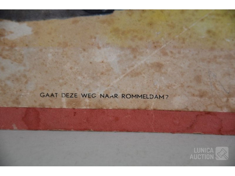Marten Toonder"gaat deze weg naar Rommeldam?", 1943, afmeting 57x31 cm. Uitgave: De muinck en Co, Amsterdam. K390 Diane Edition, Origineel.