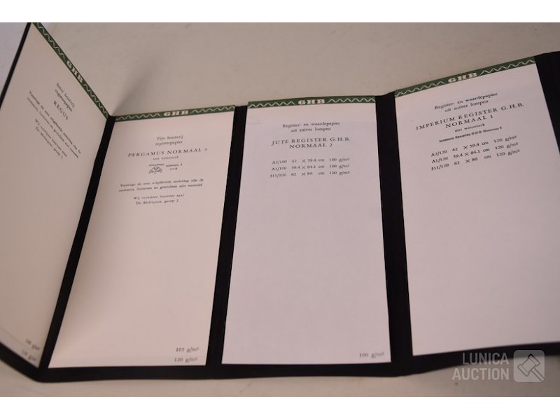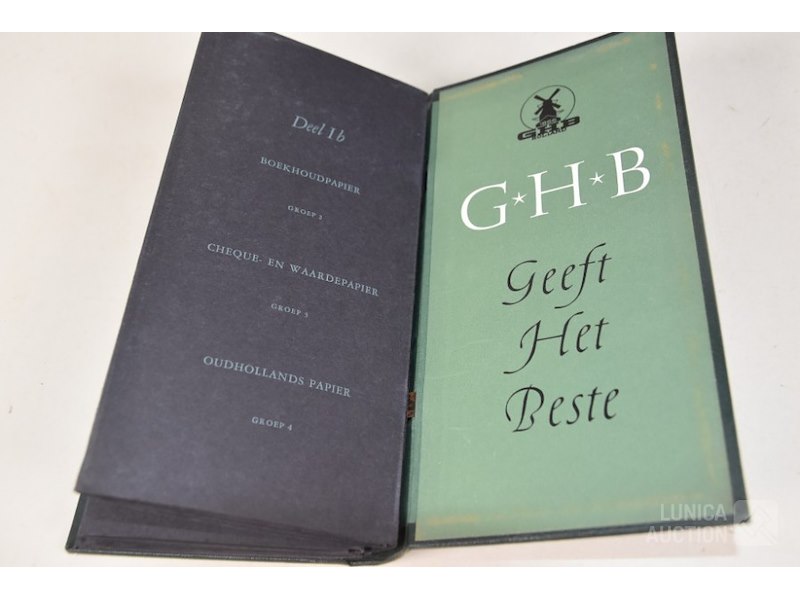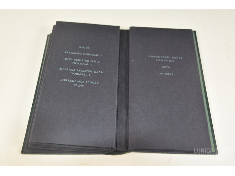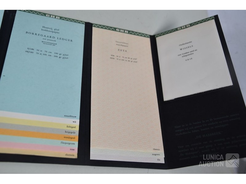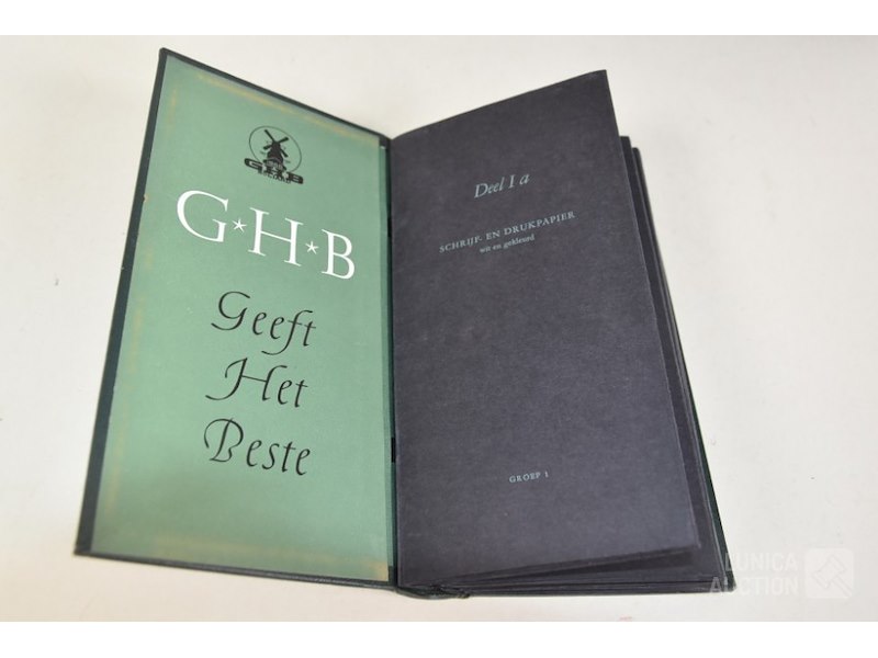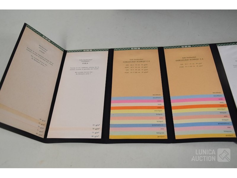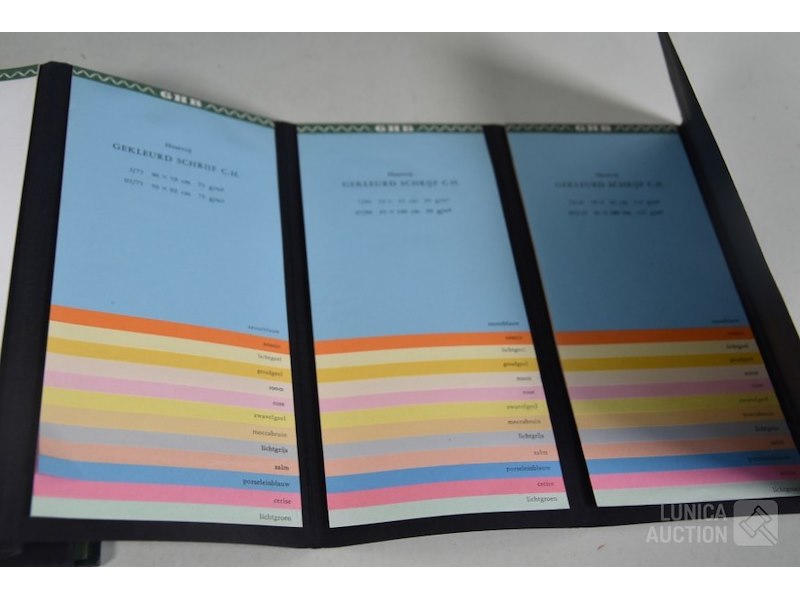 12 stuks/boeken, papiermonsters GHB papierHet betreft hier allemaal voorbeelden van papiersoorten die voor de verkoop zijn gebruikt. In rek.
