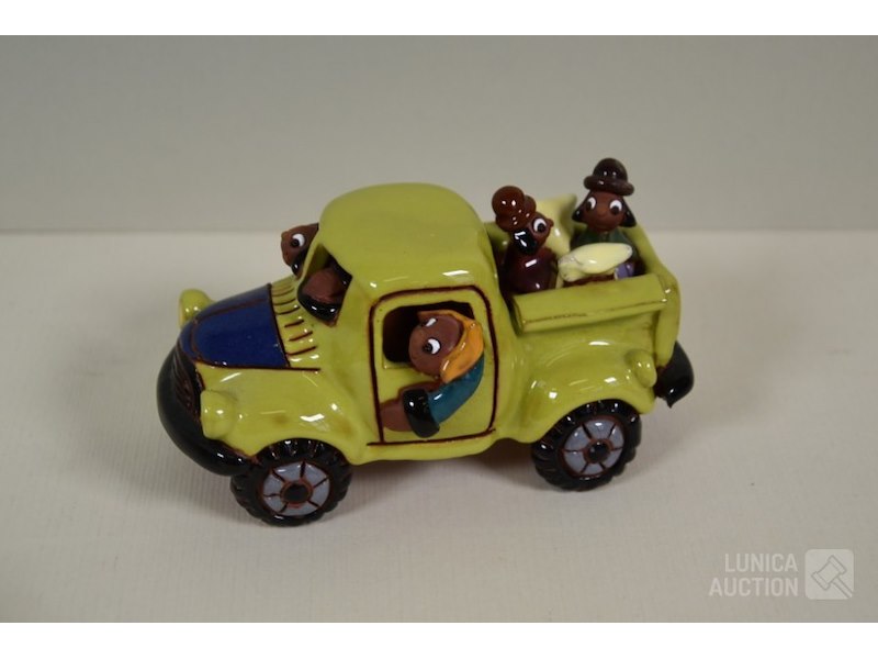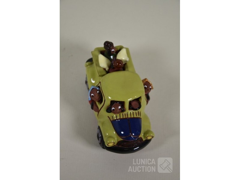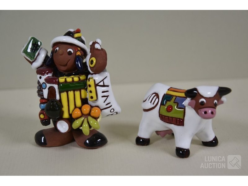 4 stukskeramiek, o.a. vliegtuig, afmeting (bxh) 14x9 cm; vrachtauto, afmeting 13x7 cm.; Ekeko, hoogte 9 cm.; Koe, hoogte 5 cm.