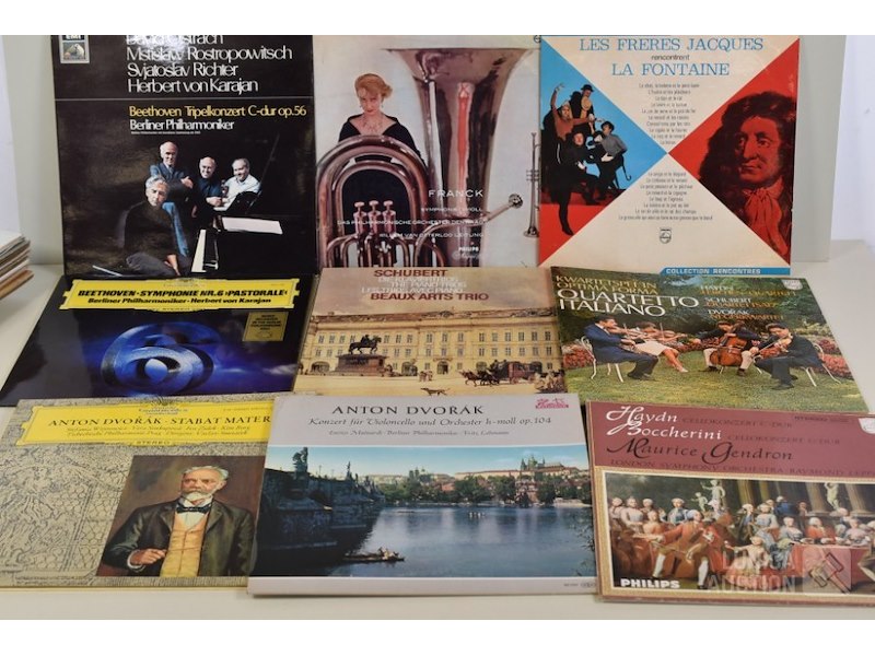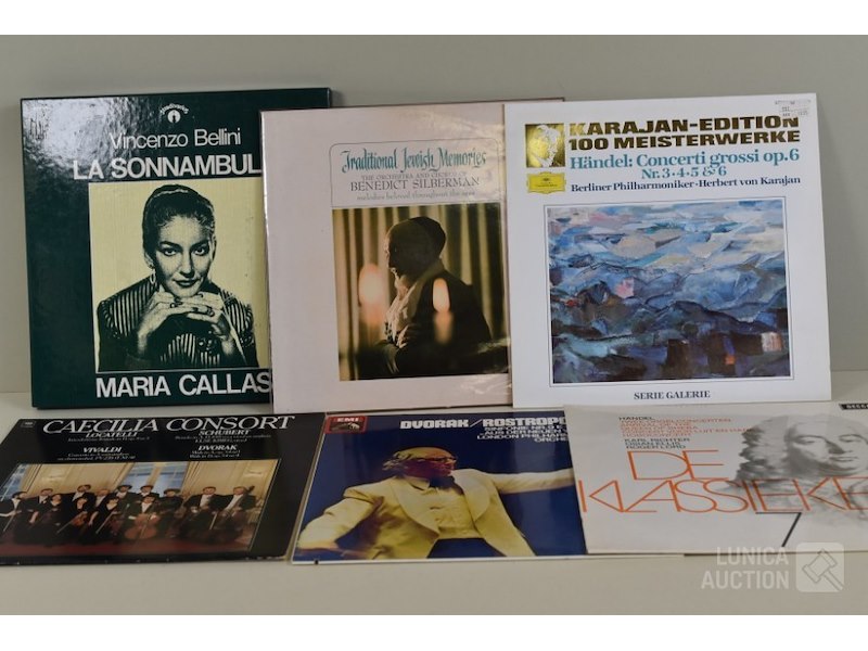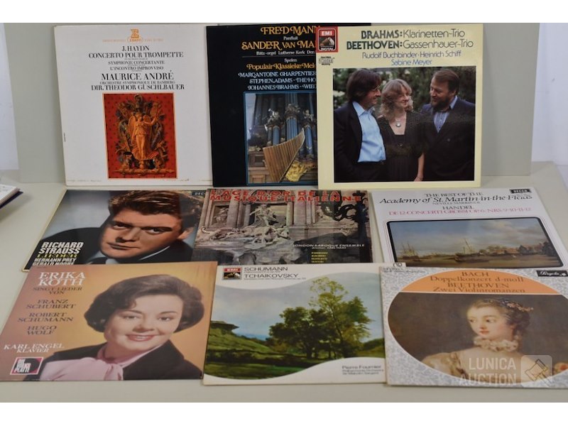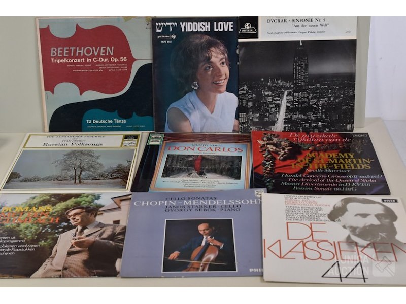 Ca. 40 stuks Thema: "klassieke muziek/vioolconcertDiverse titels. Jaren'60 en '70 O.a. verzamelalbum "Beaux Arts Trio" met schubert; " verzamelalbum La sonnambula" van Vincenzo Bellini met Maria Callas; C. Franck met symphonie D-moll; Antonin Dvoràk; enz. Zie foto's