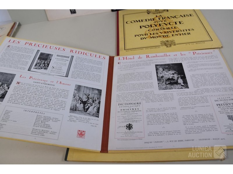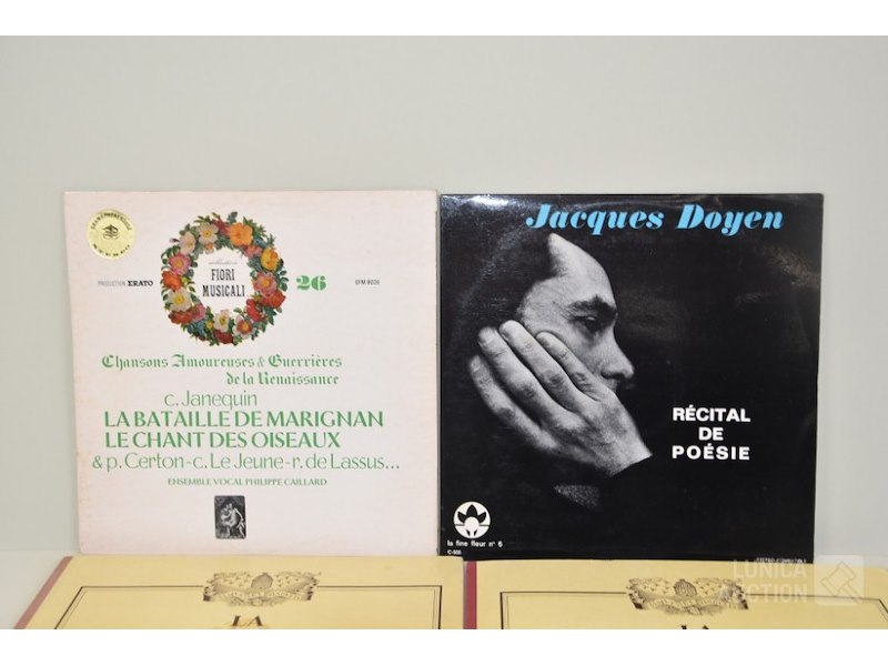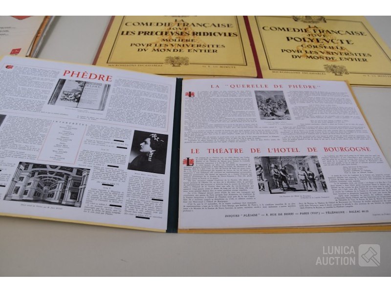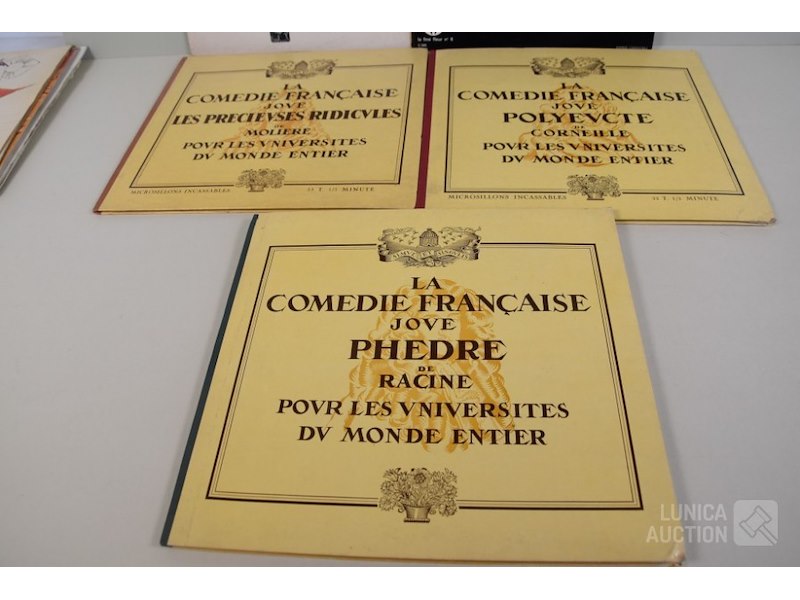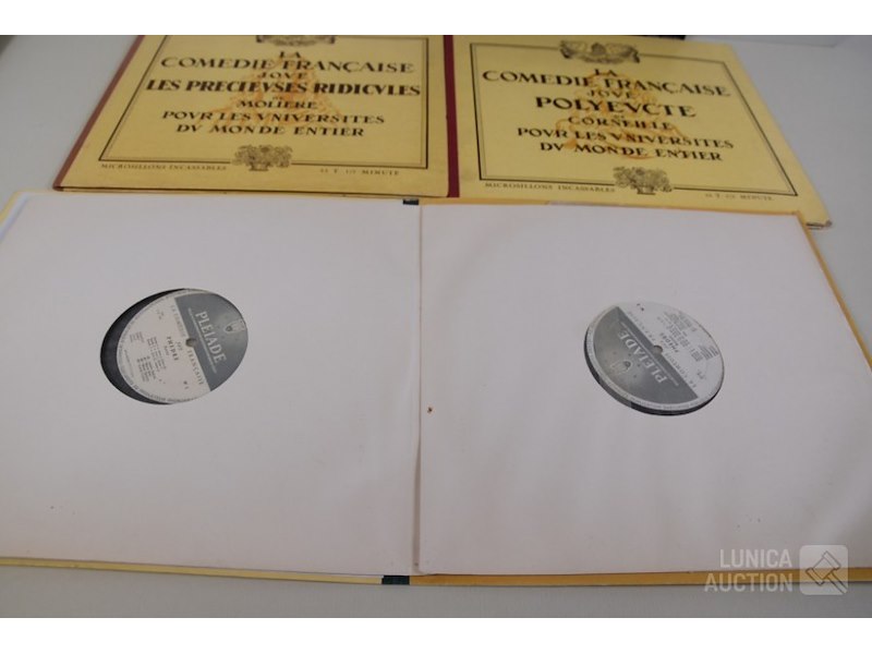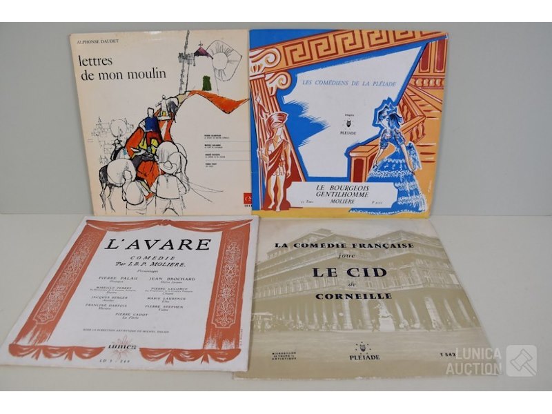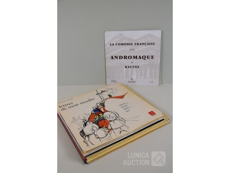 Ca. 12 stuks O.a. Thema: "Franse comedie"O.a. 4x album "La comedie Française", diverse titels; "lettres de mon moulin"van Alphonse Daudet; Jacq. Doyen; enz. jaren '60 en '70. o.a. 33 toeren platen