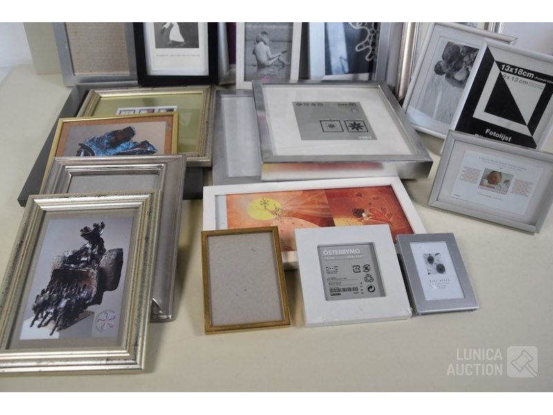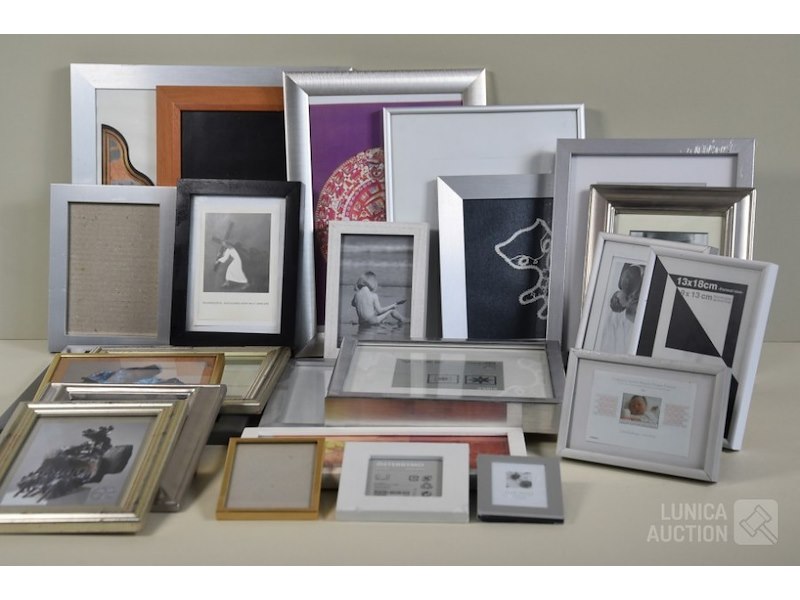 Ca. 25 stuksDiverse modellen, afmetingen en materialen. Afmetingen varieren van 7x10 cm tot 35x35 cm. Sommige lijstjes hebben krasjes.