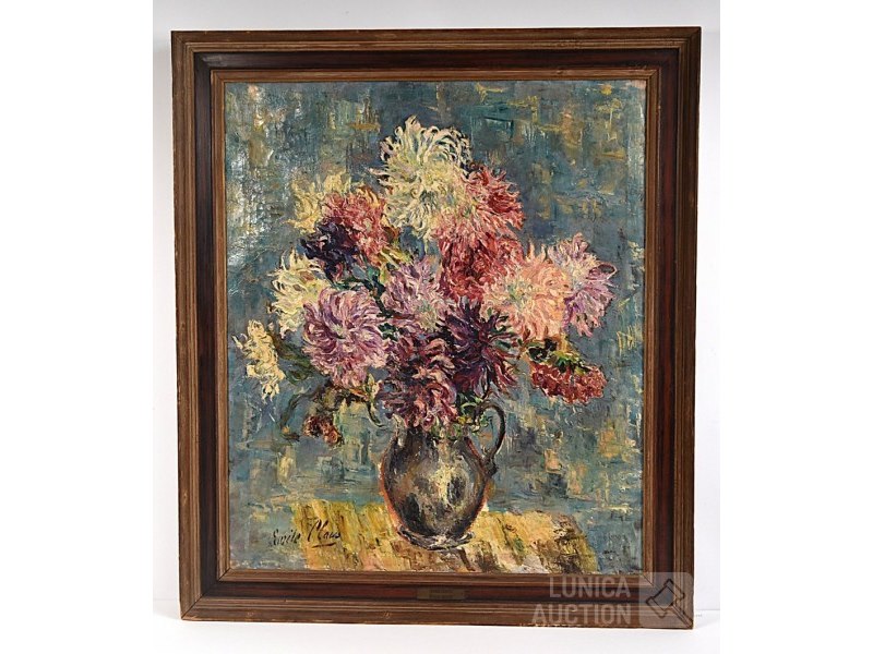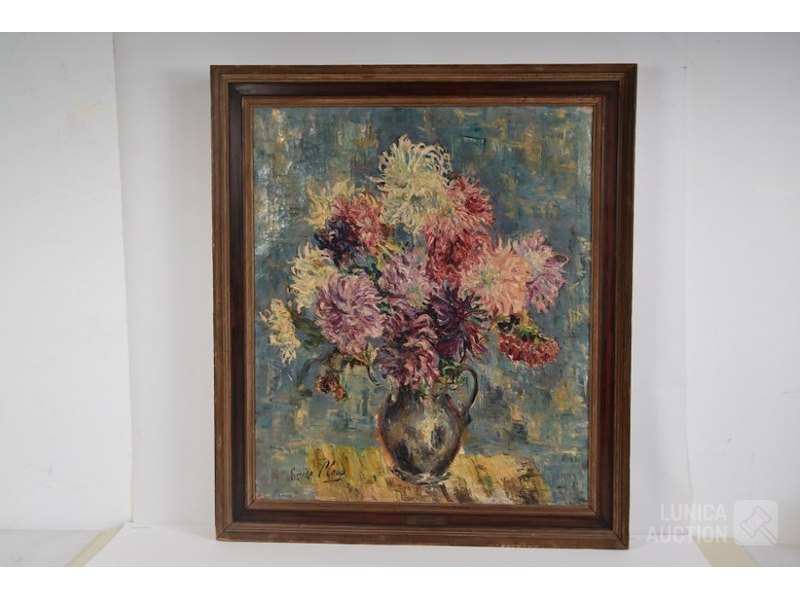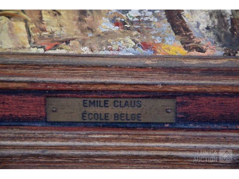 Olieverf op doek"stilleven". Kunstwerk is gesigneerd L.O. met Emile Claus. Ingelijst. Afmeting 72x82 cm. Doek heeft enkele kleine gaatjes, die gerestaureerd kunnen worden.