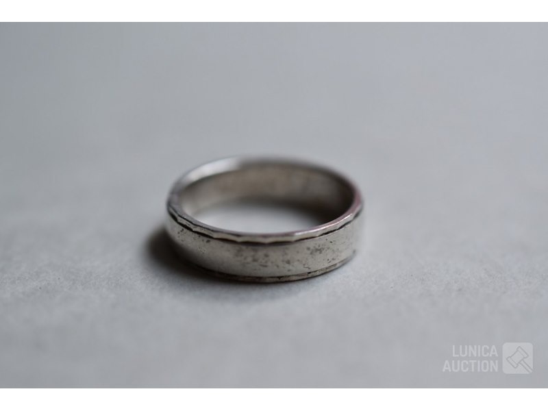 Zilver 925gemerkt met zwaard/925 en tekst b.m. Ringmaat 18 mm. Gewicht 4 gram. Ring heeft gebruikerssporen.