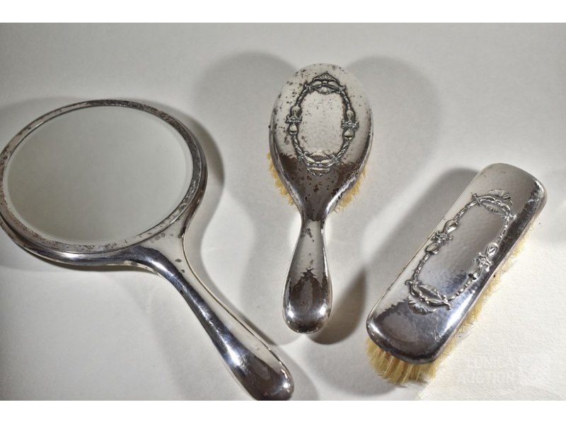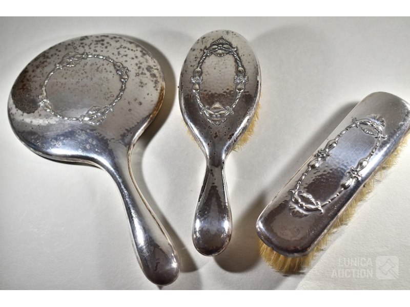 3-delige antieke borstel setAllen gemerkt met GERO 90. 2x borstel en spiegel.