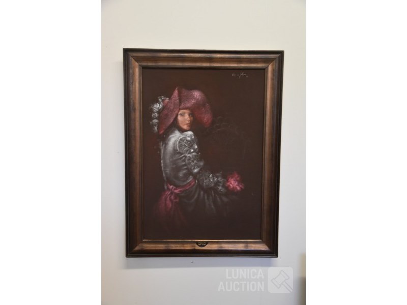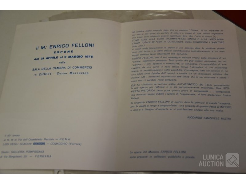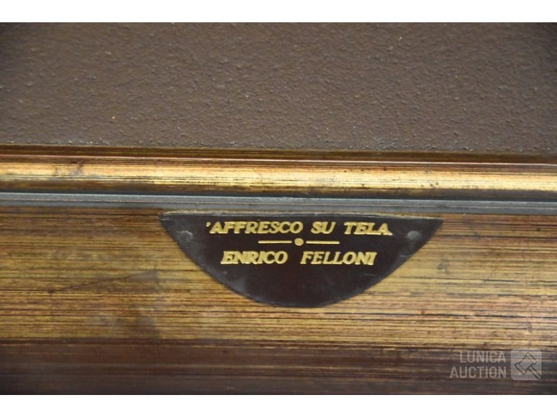 Enrico Felloni, 1973fresco techniek op doek, afkomstig van tentoonstelling Galleria Pomposiana Ferrara, 1976. Ingelijst, afmeting 88x118 cm!