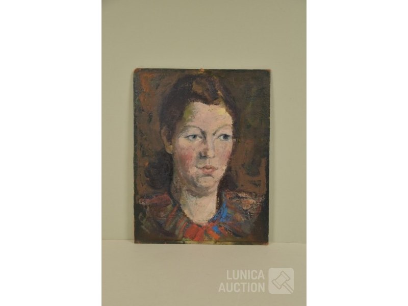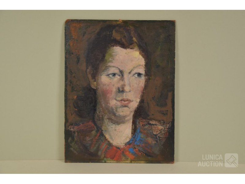 PortretOlieverf op paneel, afmeting 32x42 cm. Niet ingelijst.