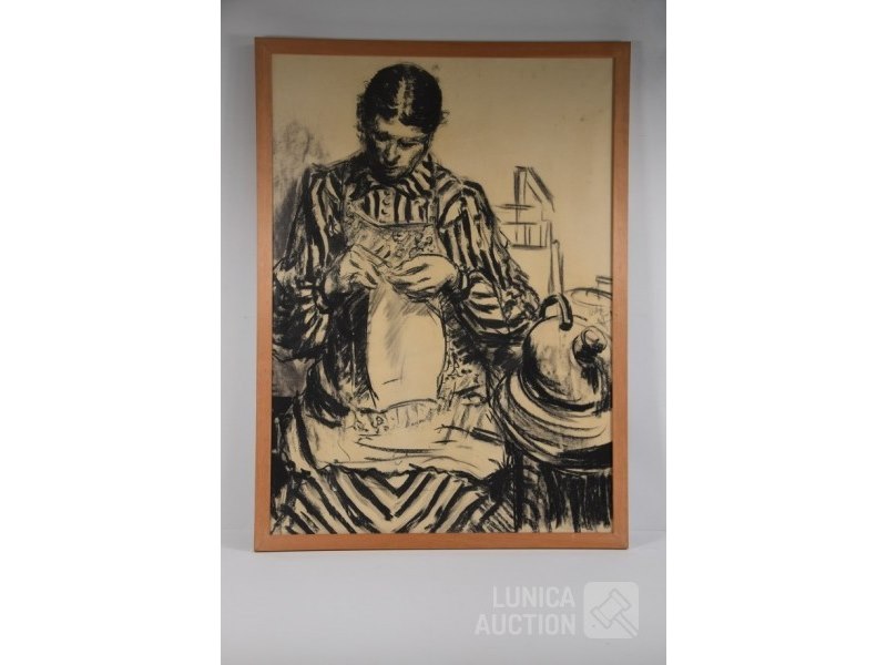 Portret, 1944pastelkrijt op papier, ingelijst, achter glas. Afmeting 74x100 cm! Gesigneerd M.R.