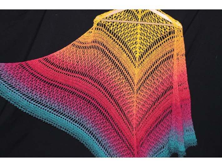 Omslagdoek Volwassenen Zonder Kledinghanger, kleurgradatie geel/roze/blauw Staat: Nieuw Verzendgewicht: 1.00 Kg.
