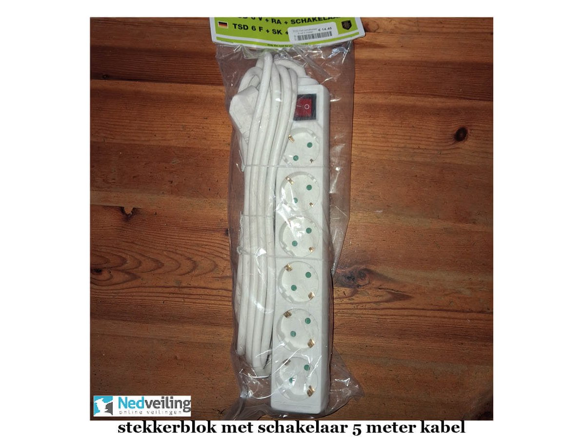 Stekkerblok met schakelaar 5 meter kabel Staat: Nieuw Verzendgewicht: 1.00 Kg.