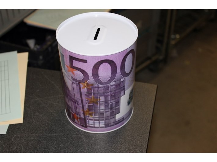 Blikken spaarpot groot 1x model €500 euro, Staat: Nieuw Verzendgewicht: 0.40 Kg.