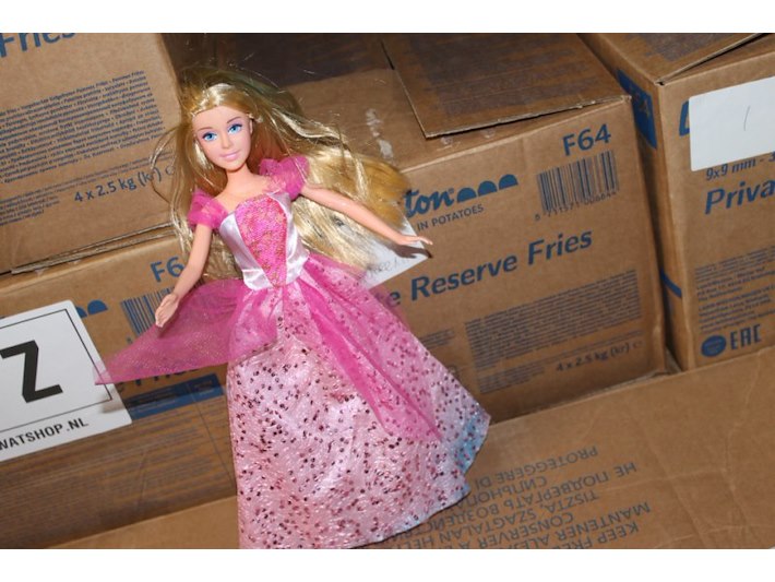 1 speelpop met rose jurk in ds 2, Staat: Nieuw Verzendgewicht: 0.20 Kg.