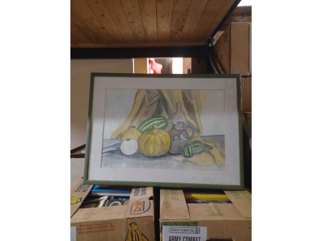 Wand decoratie pompoenen 75x56cm aantal 1 stuks. Staat: Gebruikt Verzendgewicht: 6.00 Kg.