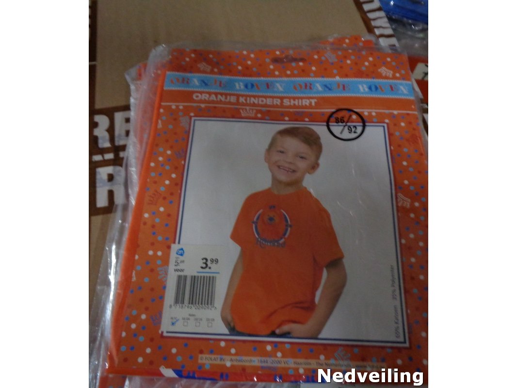 1x Oranje kinder t-shirt Maat 86/92, Staat: Nieuw Verzendgewicht: 0.40 Kg.