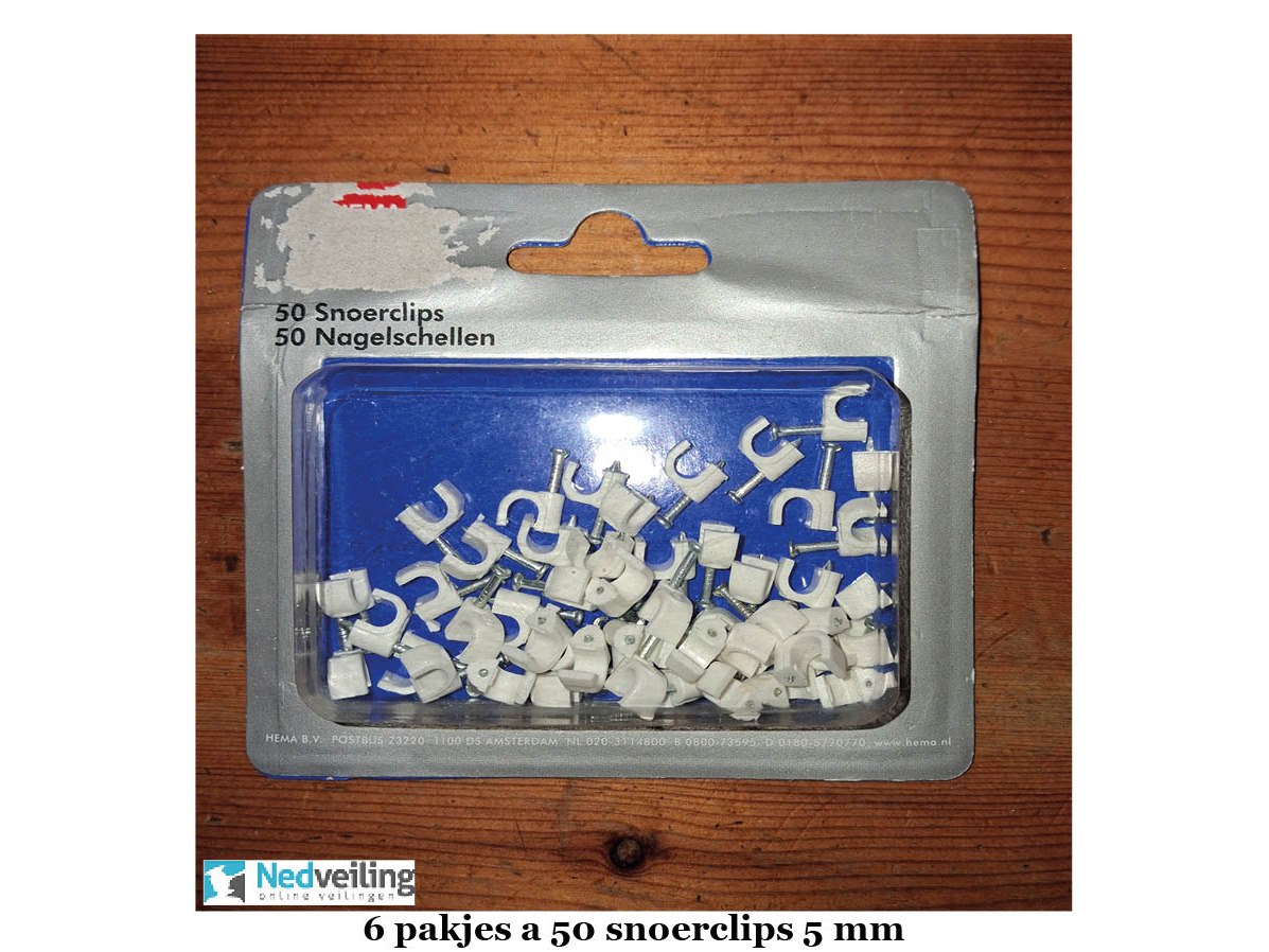 6 verpakkingen à 50 snoer/kabel clips 5 mm Staat: Nieuw Verzendgewicht: 0.30 Kg.