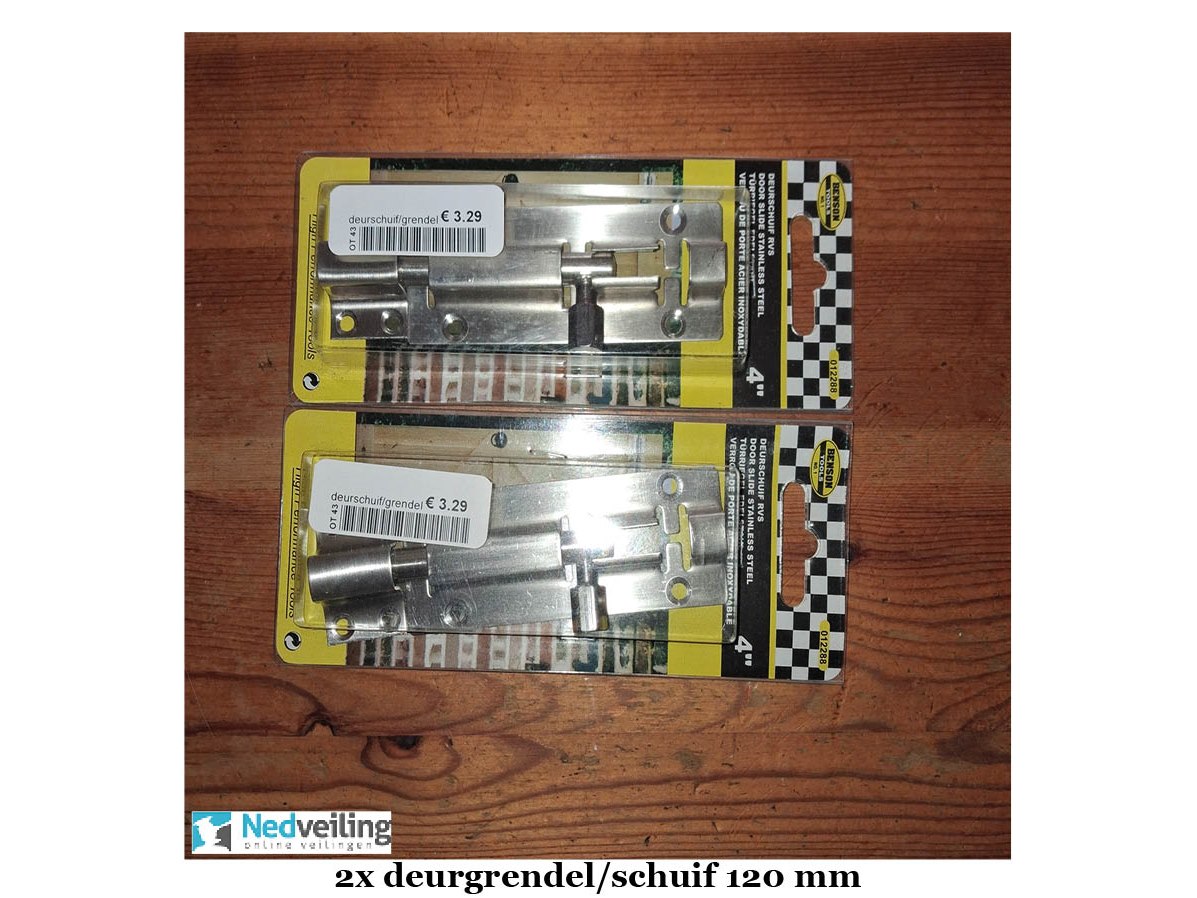 2x deeurgrendel/schuif 120 mm Staat: Nieuw Verzendgewicht: 0.30 Kg.
