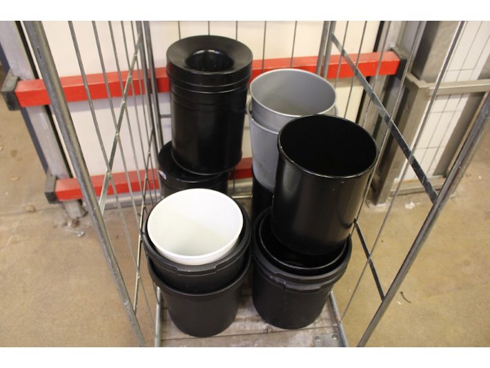12x Prullenbak, kunststof en staal, incl 2x stalen bak met vlamdover Staat: Gebruikt Verzendgewicht: Deze kavel kan niet worden verzonden!