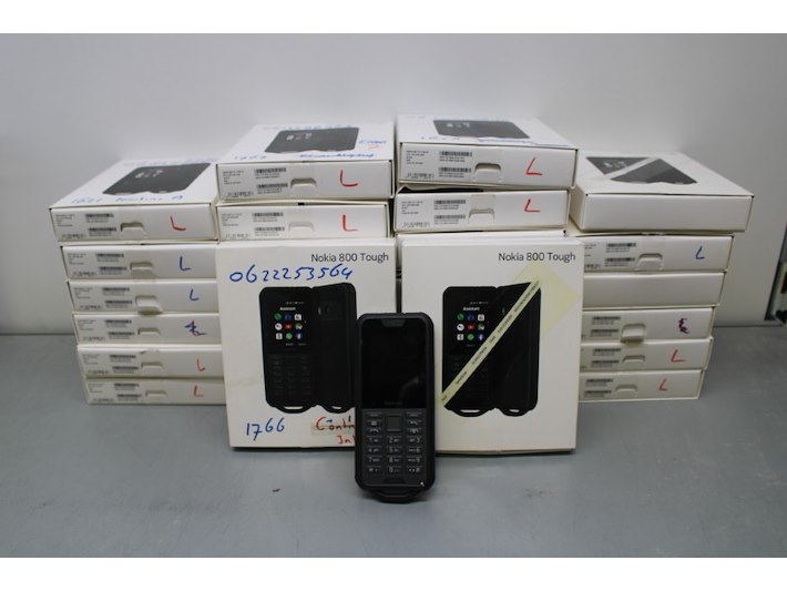 28x Nokia 800 Touch robuuste bouw gsm, valbestendig en waterdicht, deels met oplader in de doos Staat: Gebruikt Verzendgewicht: 5.00 Kg.